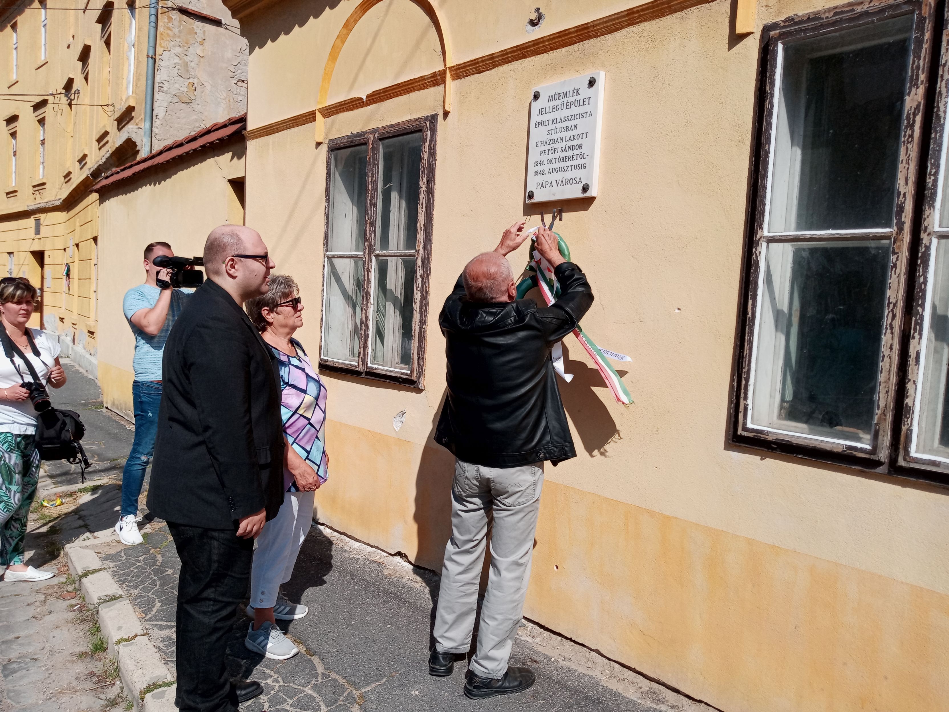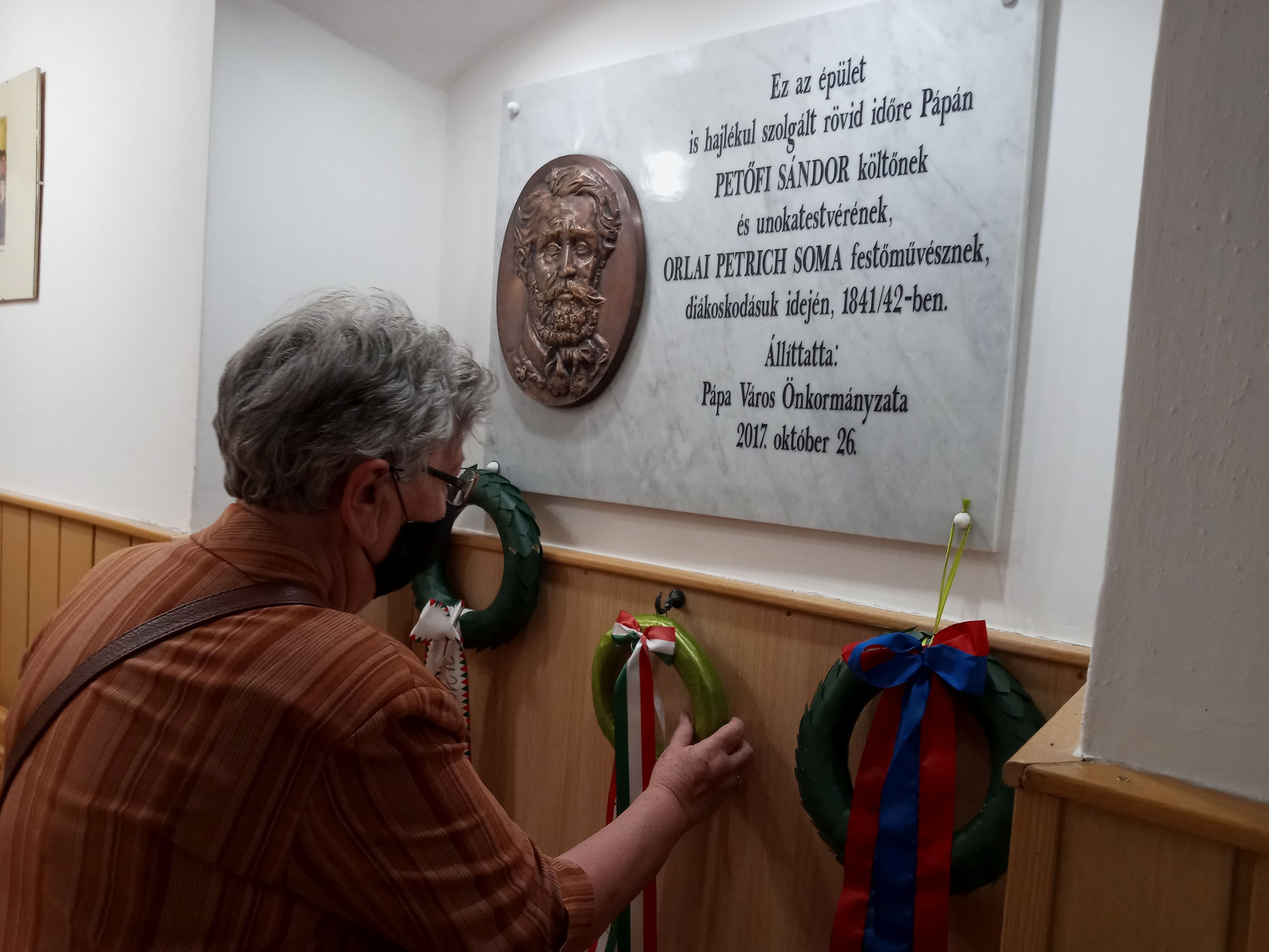Koszorút helyeztek el az öt évvel ezelőtt állított Orlai-Petőfi emléktáblához, Kerecsényi Zoltán felidézte, hogy 1841 őszén hosszas tolnai-baranyai csatangolás után ide érkezett vissza újra Pápára Petőfi Sándor, ez a Barát utcai épület szolgált második pápai lakóhelyéül. Orlai kicsit később, december körül érkezett meg a Barát utcai szállásra, hármasban laktak itt együtt egy Lantay Sándor nevű barátjukkal, azonban majd megfagytak, kint csak úgy röpködtek a mínuszok, a szobát lehetetlen volt befűteniük. (Vály Ferenc professzor naplójegyzeteiből tudható, hogy 180 évvel ezelőtt, 1842 legelején a hőmérő higanyszála állandóan mínusz 3–12 fok között volt.) Tehát mihamarabb komfortosabb hely után kellett nézniük.