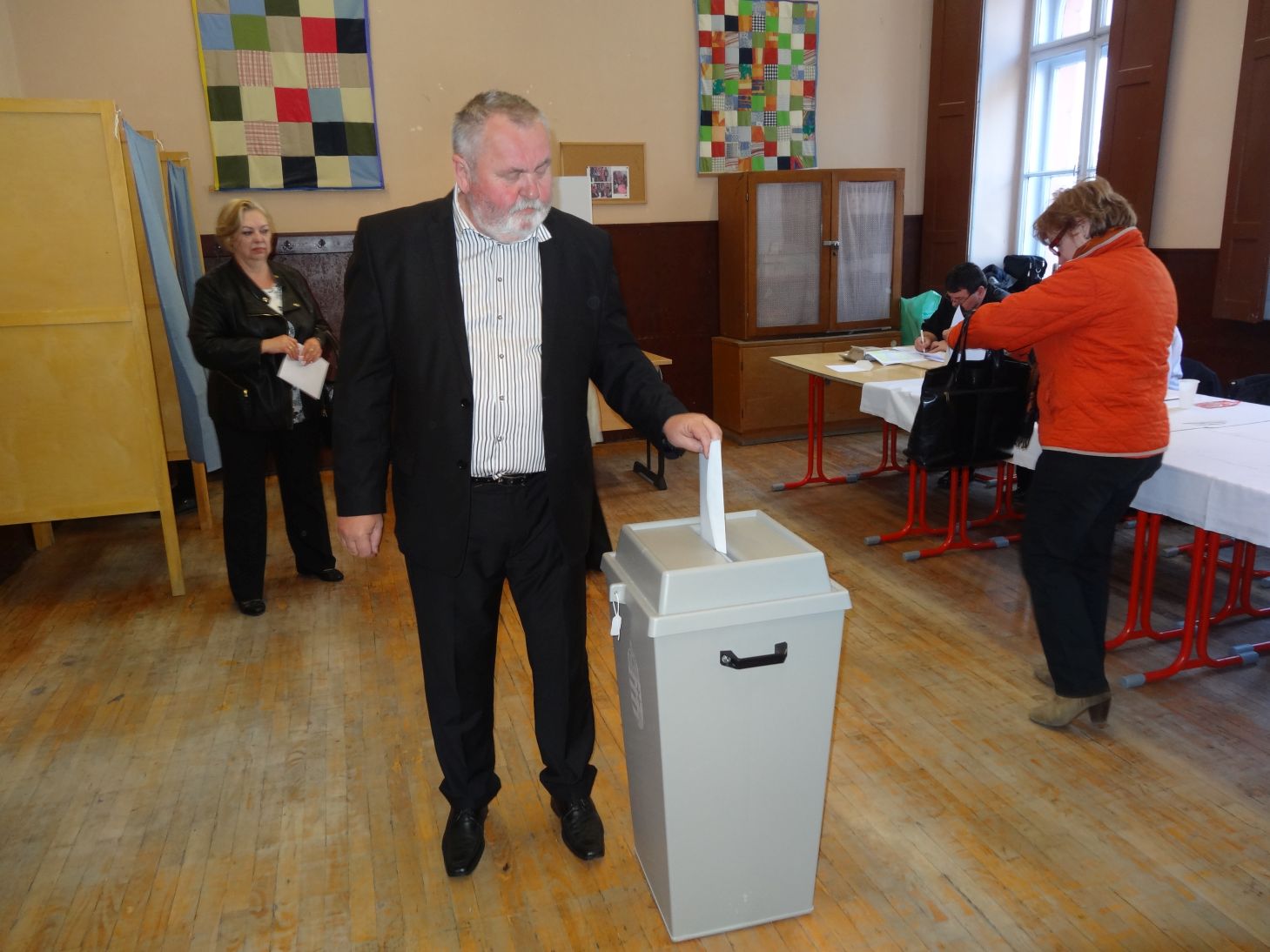 A baloldali pártok által támogatott MSZP-P képviselőjelöltje – felesége és lánya társaságában – a Türr István Gimnáziumban adta le a voksát.