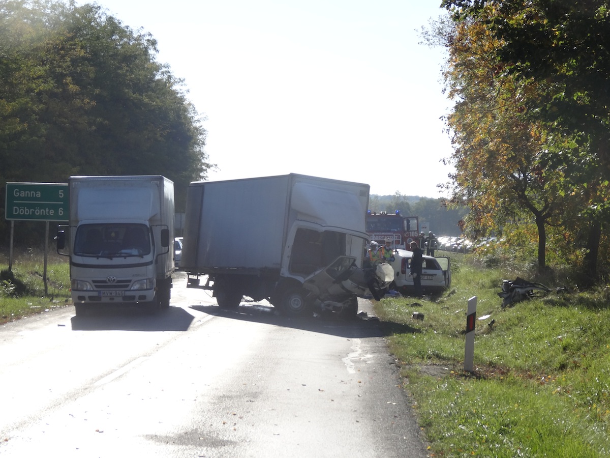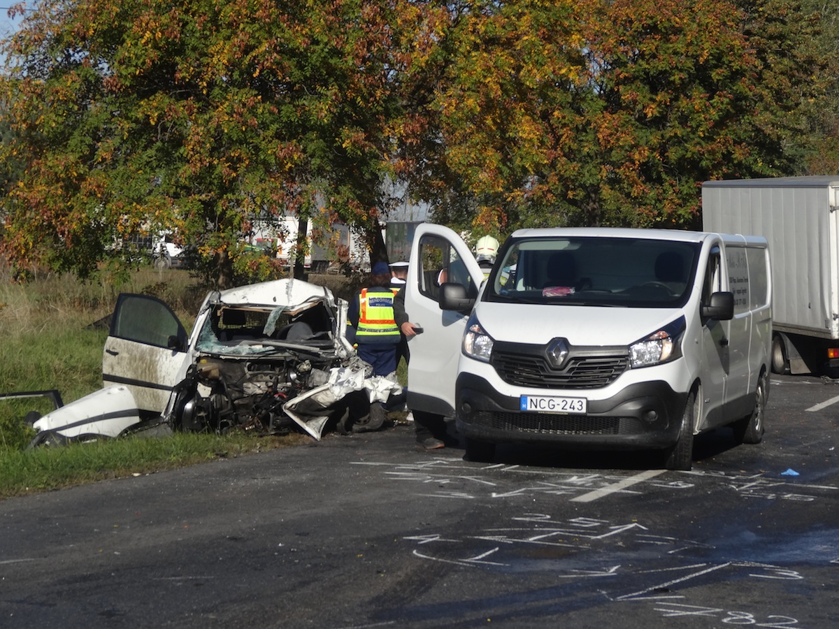 A 83-as út Tapolcafőhöz közeli szakaszán, a Gannára vezető elágazásnál frontálisan ütközött egymással egy kisteherautó és egy személygépkocsi.