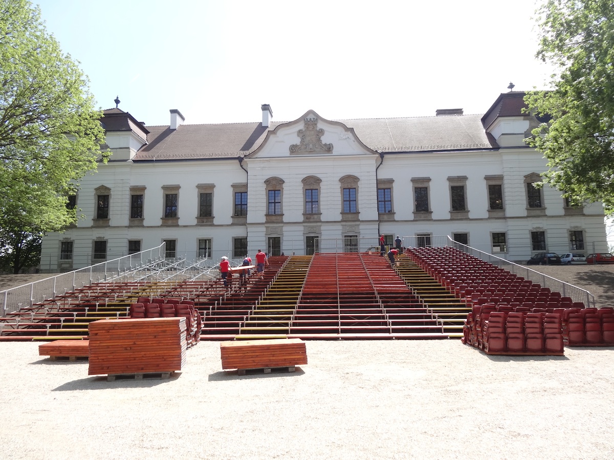 Tavaly júniusban adtunk hírt arról, hogy a meglehetősen leromlott állapotú régi szabadtérit a Városgondnokság munkatársai elbontják és a zöld város projekt keretében a Várkerttel együtt a Várdomb is megújul és a 2018-as városi ballagás már az új helyszínen kerül megrendezésre. Az új lelátó tartópilléreinek a kiépítéseidén áprilisban kezdődött meg. A vasbeton tartóelemekre a Városgondnokság munkatársai szerelik fel a már többször használt, városi tulajdonban lévő mobil lelátót, melynek összeállításával néhány napon belül végeznek - tudtuk meg Bakó Istvántól. Az igazgató hozzátette, ezzel még a színházi tér kialakítása nem fejeződik be, hiszen hátravan a füvesítés, a fény- és hangtechnika telepítése, valamint a gyeprács kialakítása.