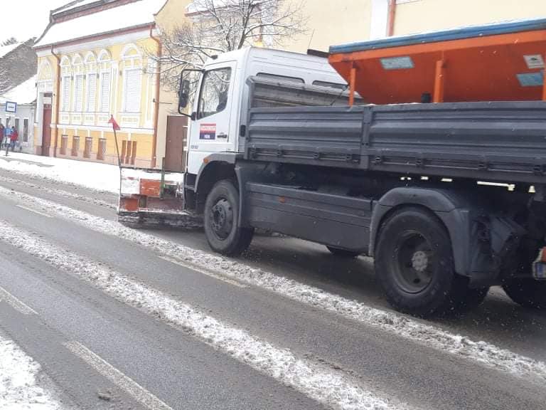 Pápán a Városgondnokság munkatársai hajnali 5 óra óta dolgoznak az utak és a járdák síkosságmentesítésén.