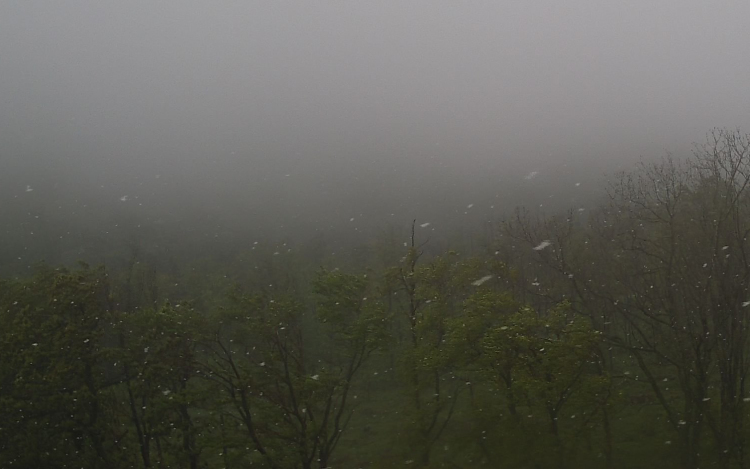 Hópihék látszanak a Bakonyban 650 méter magasan fekvő Hajag-tetői webkamerán - írja az Időkép.