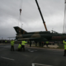 Több nem várt probléma is nehezítette a látványos daruzást, mely végül sikerrel zárult - felkerült a talapzatra a MiG-21-es vadászgép, emléket állítva a pápai katonai repülésnek.