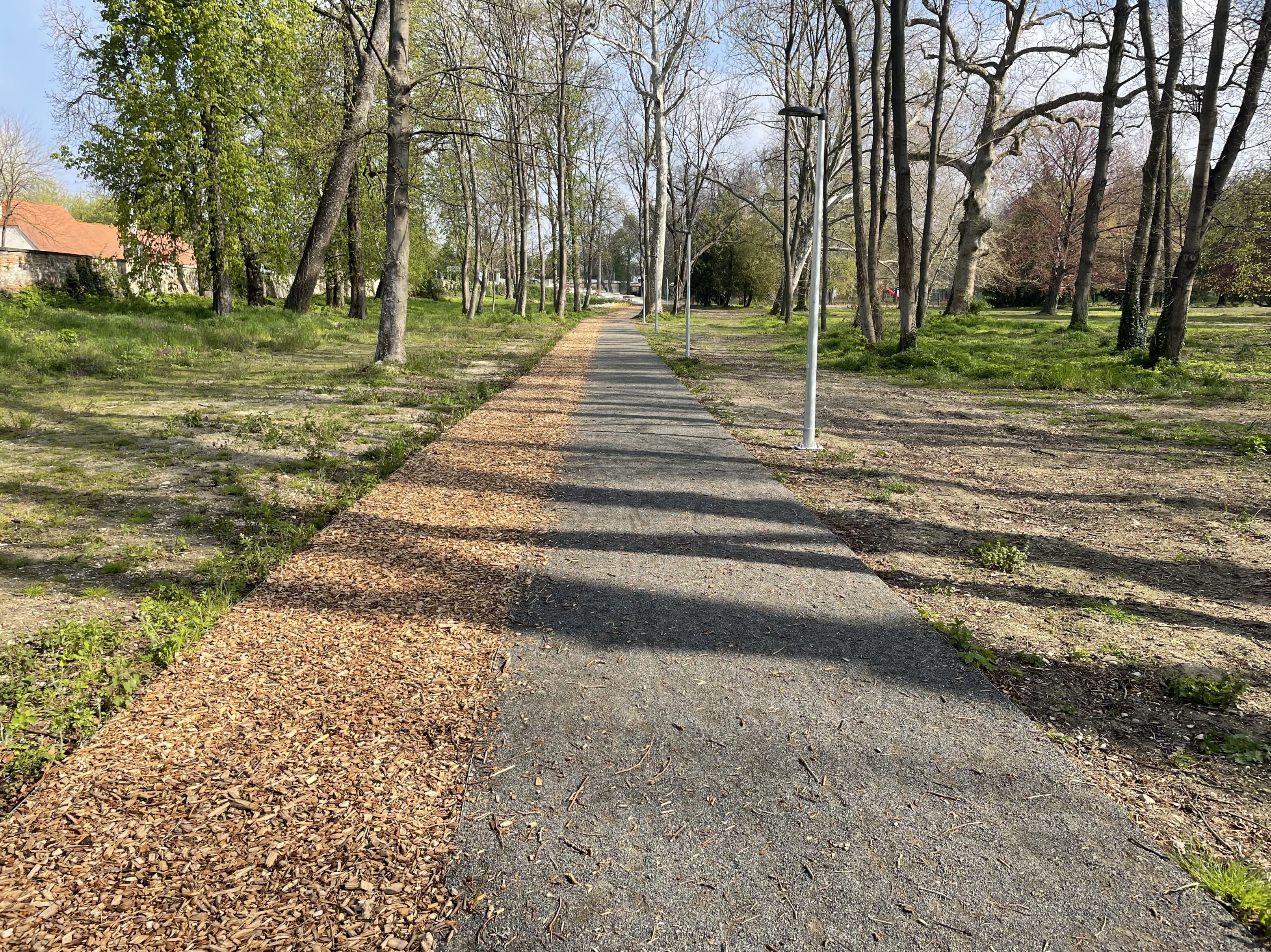 Többen kifogásolták a sétányok burkolatát. Mi az oka annak, hogy nem szilárd burkolattal látták el azokat? Megoldható-e a „tisztán tartása” ennek a felületnek, gondolok itt például a lehulló gallyakra, egyáltalán cél-e ez, vagy egy természetközelibb kép az, ami megjelenik a jövő Várkertjében?