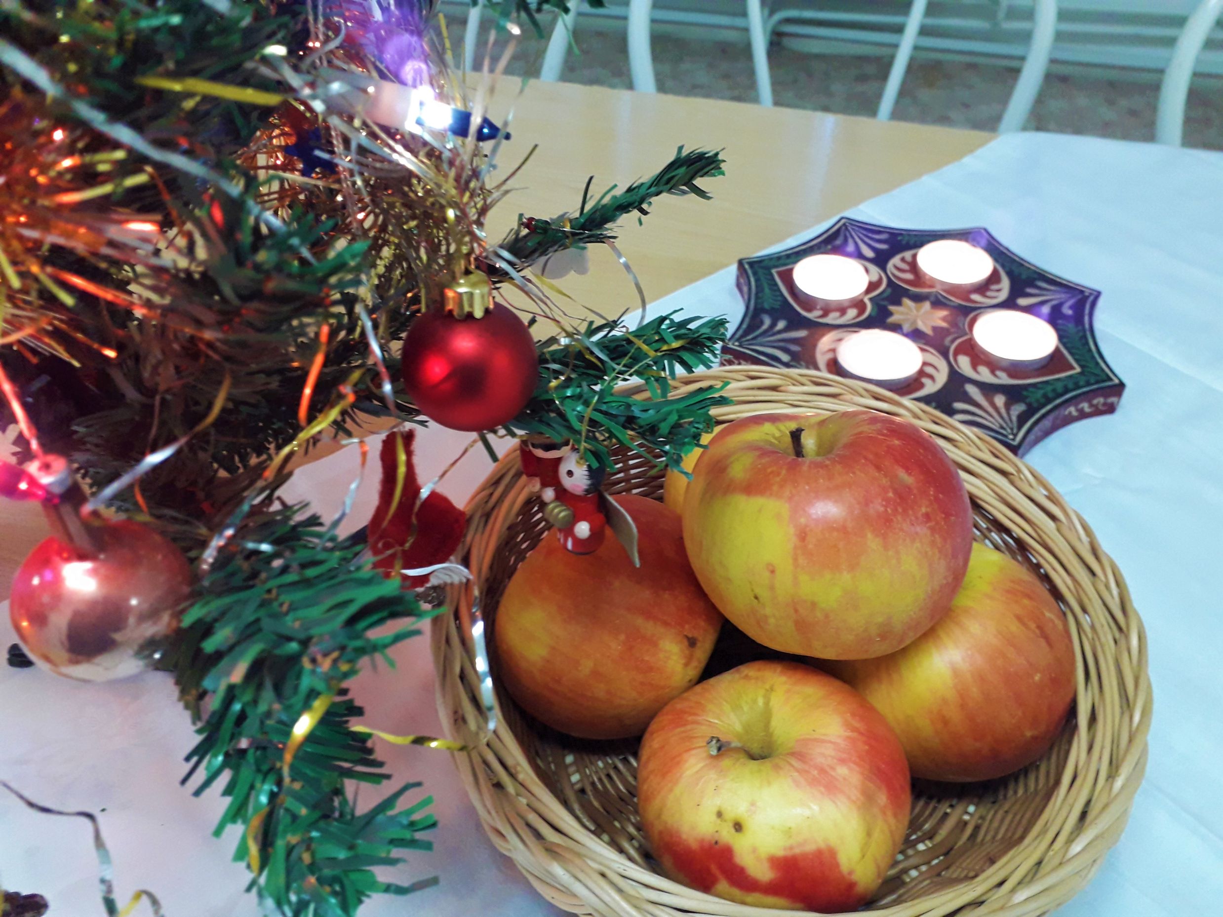 A fönti Somogyváry-regényrészletben megjelenik az alma és a dió, mint dísz. A régi világban szokás volt ezeket a terményeket Pápán és a környező falvakban is a karácsonyfákra aggatni szimbólumként. Manapság ezeket színes üveg- és műanyaggömbök helyettesítik a családok ünnepi fáin.