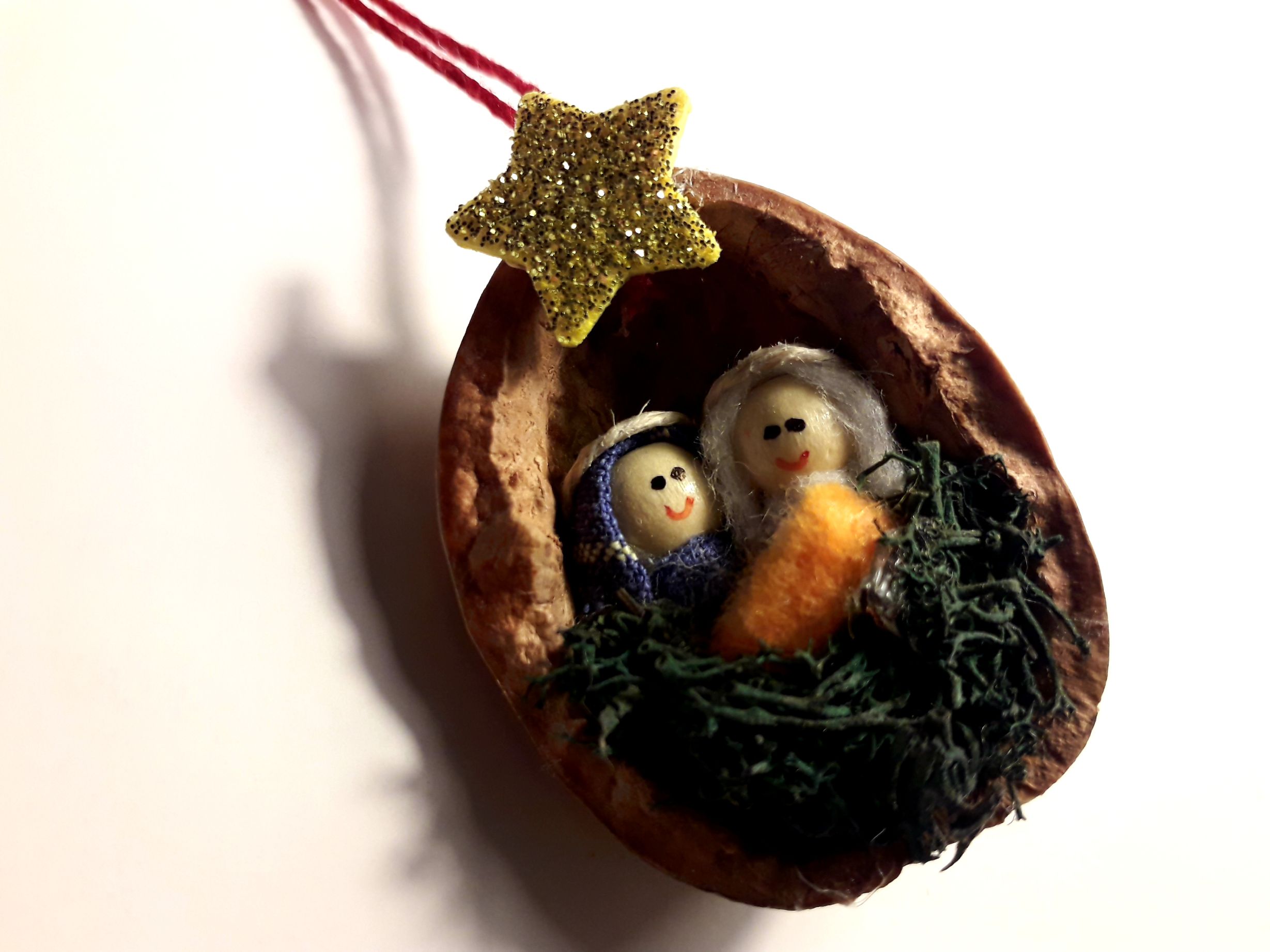 De a paradicsomi fa gyümölcsére való utalásként is megjelenhetett a karácsonyfán… A dió is ősi Krisztus-jelkép: ahogy a dió a héjában, a Megváltó anyja méhében, majd a sziklasírban rejtőzött. Nemcsak a karácsonyesti étrend fontos része mind a mai napig (diós bejgli), a fa díszei között is természetes vagy mesterséges formában megjelenik, sőt napjaink kézművesek készítette díszei közé visszatért a dióhéjba rejtett apró pólyásfigura, gyermek Jézus is…A karácsony iparszerűvé és kereskedelmivé válásának egyik legkorábban megjelenő területe volt a karácsonyfadíszek tömeggyártásának beindulása. Szinte a szokás elterjedésének kezdetétől felismerhető az a folyamat, amely végül a természetes díszítőelemek, az édességek, a növényi termések – alma, dió, toboz – kiszorulását és mesterséges változataikkal való helyettesítését eredményezte…”