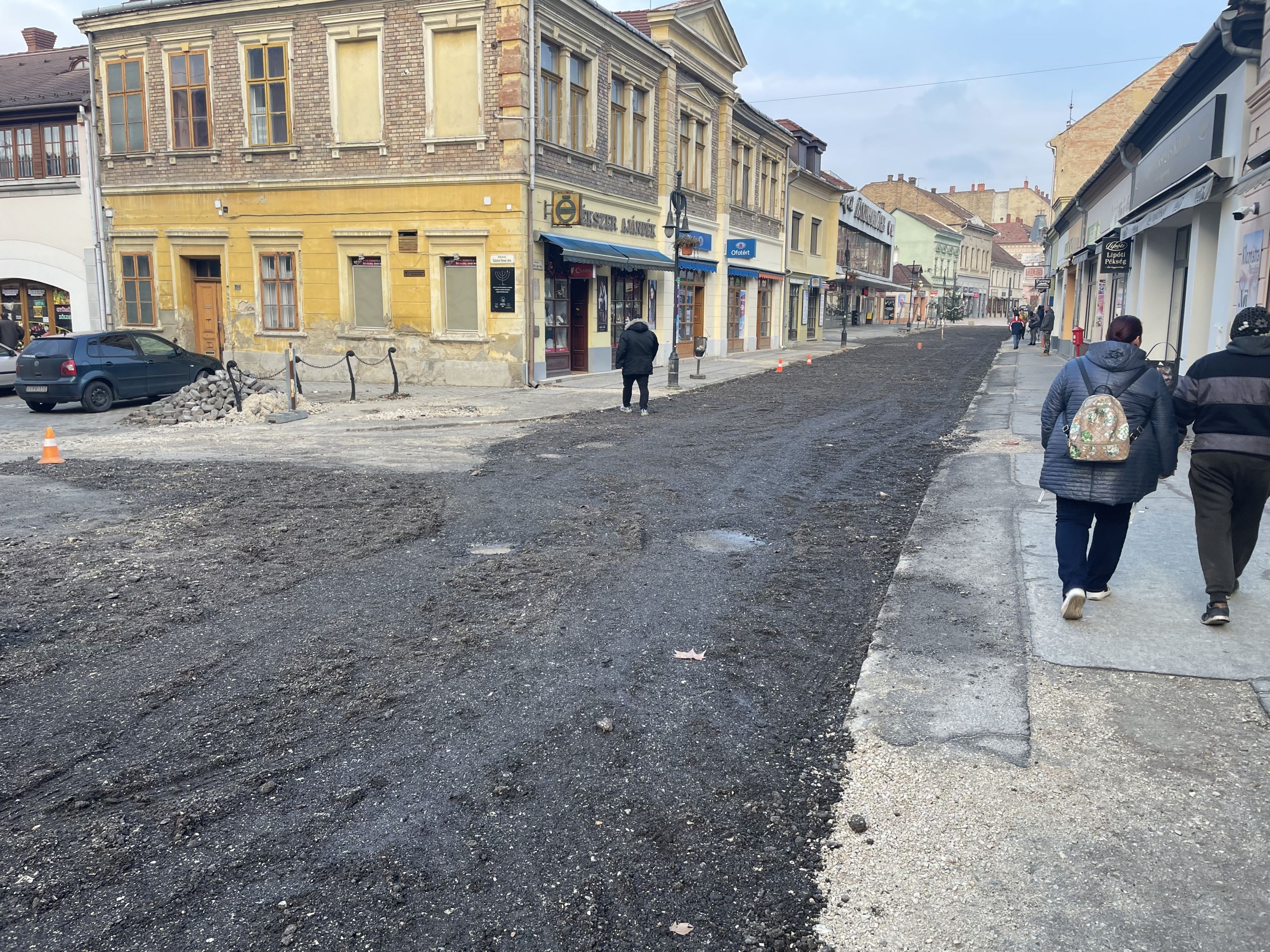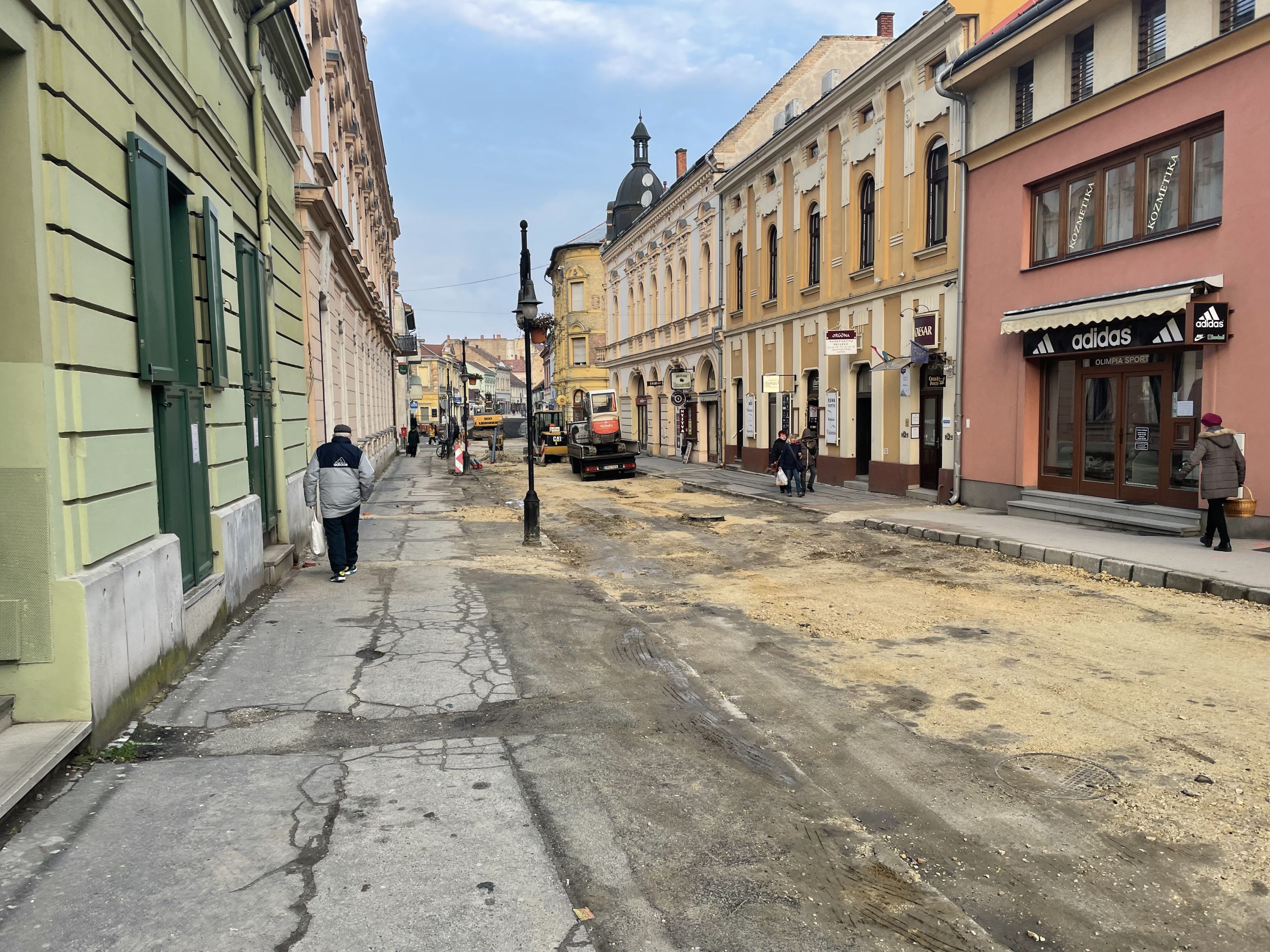 A Petőfi utca és a Március 15. tér közötti szakaszon hamarosan befejeződik a közműcsere, de a térkövezés még nem kezdődik meg.