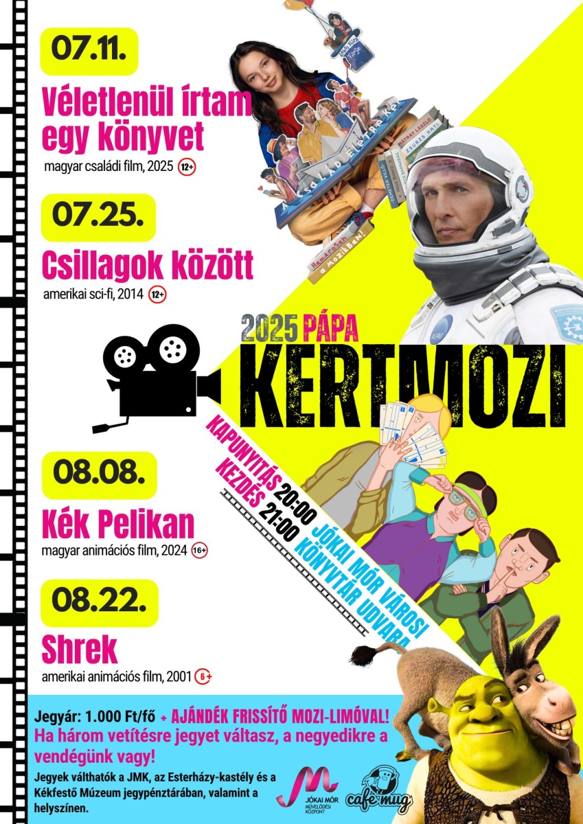 Július 11-én veszi kezdetét az idei Kertmozi vetítéssorozat Pápán. A Jókai Mór Művelődési Központ szervezésében igazi közönségfilmeket láthat a publikum, elsőként a Véletlenül írtam egy könyvet című magyar családi filmet.