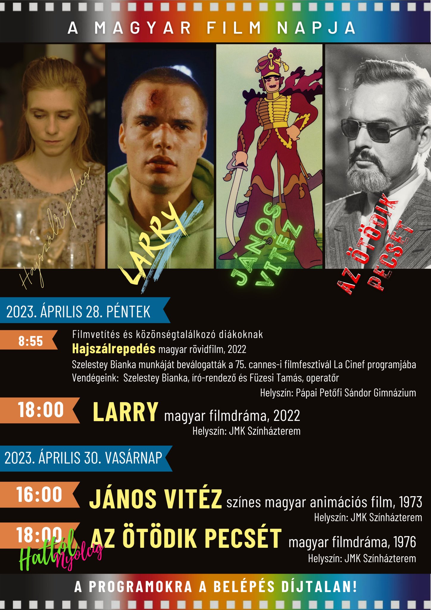 A filmfesztivállal egyidőben emlékeznek meg a városban a Magyar Film Napjáról, amelynek keretében a JMK filmvetítéseket és közönségtalálkozót szervez. Az ingyenes látogatható programok közt szerepel a Hajszálrepedés című magyar rövidfilm bemutatása, illetve közönségtalálkozó a film alkotóival. Megtekinthető lesz a komoly társadalmi kérdéseket taglaló Larry című film, Jankovics Marcell János Vitéze, továbbá Az ötödik pecsét című klasszikus.