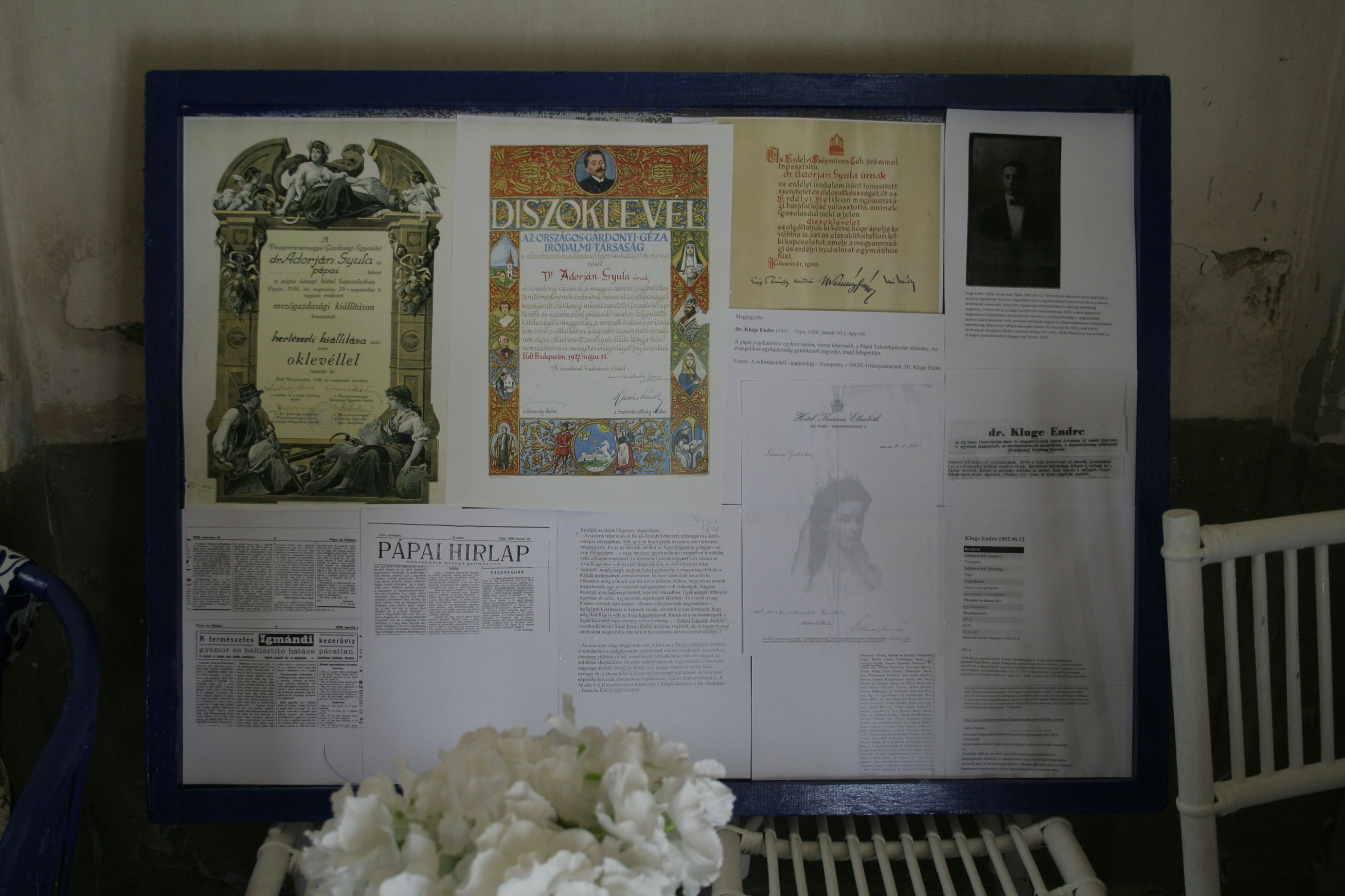 Az időbringára felszállva 1908-ban találtuk magunkat. Ekkor a belvárosban már állt a Postapalota, a mozi, valamint a Deák Ferenc utca 4-es ház is, melyek mindegyike Fon Mihály építőmester keze munkáját dicsérik. Utóbbi megépítésére a kor kiváló ügyvédjétől, dr. Adorján Gyulától kapott megbízatást, aki a város legnagyobb adózóinak listáján is szerepelt. Csakúgy, mint a Kluge név, amely nemcsak a kékfestésről lehet ismert. Ifjabb Kluge Endre, akivel szintén találkozhattunk Pápán az 1910-es években, az egészségügyben lett világhírű. Az új Szent János Kórház elme- és idegosztályát három évtizeden át vezette, nemrégiben Soltész Miklós államtitkár úgy fogalmazott róla, hogy "neve a világ minden táján ismer", hozzá köthető a paranoia fogalmának megalkotása.