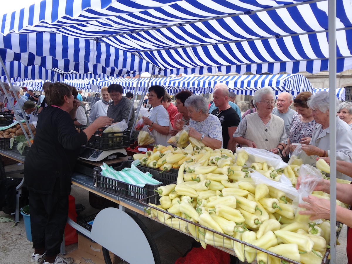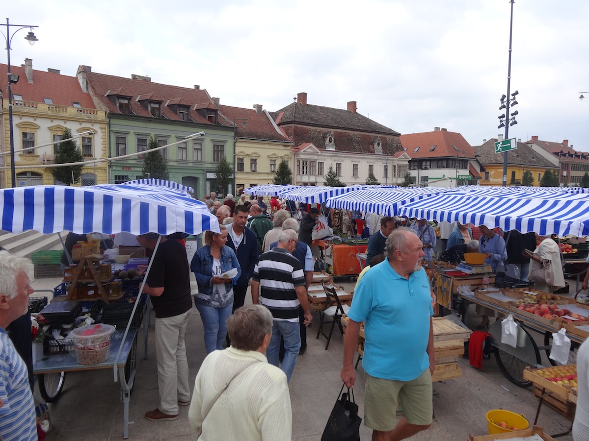 Az árusító kocsik is bőséggel megteltek gyümölcsökkel, zöldségekkel, tojással, hagymával, burgonyával, de lehetett kapni diót és füstölt árut is, mint ahogy azt a piac régi helyszínén megszokhattuk. Ami viszont újdonság volt, az az igazi vásári hangulat, hangok és forgatak, egy gyönyörű helyszínen. Pedig egyelőre csak a vásár egyik fele költözött a Fő térre, a ruha árusok októberben hagyják el régi helyüket.