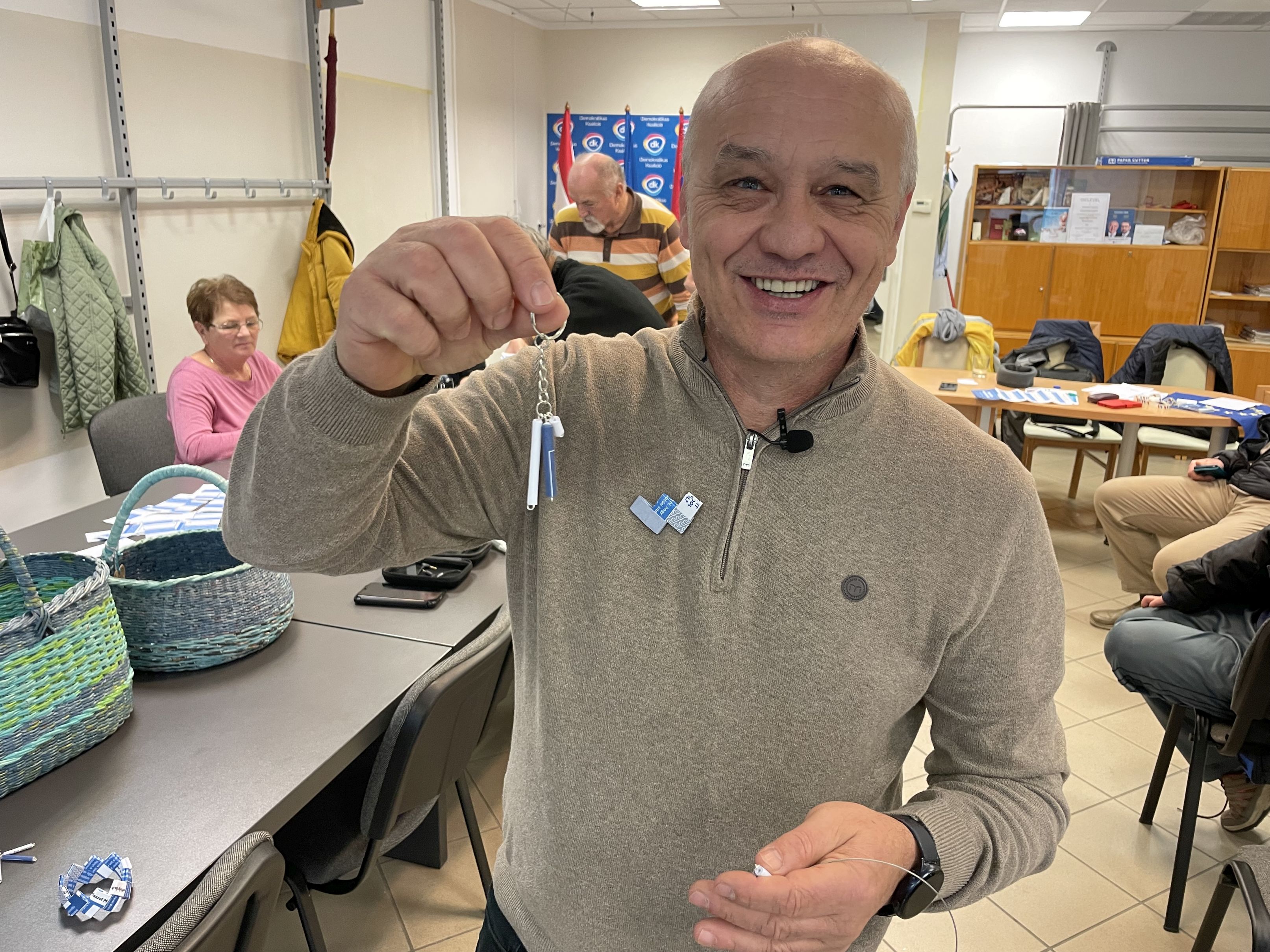 - Olyan szakember segítségét vettük igénybe, aki újrahasznosított anyagokból készít tárgyakat, ő segített a közösségünk tagjainak abban, hogy hogyan is fogjanak hozzá a különböző tárgyak elkészítéséhez. Közzé fogunk tenni egy oktató videót, amelynek segítségével bárki elsajátíthatja ezeket a módszereket, de a DK helyi irodájában is nagyon szívesen megmutatjuk bárkinek ezeket a praktitkákat - mondta el Grőber Attila hozzátéve, egészen elképesztő, de például kosarat is lehet fonni újrahasznosított papírból, amelyekre szintén láthat példákat bárki az irodájukban.