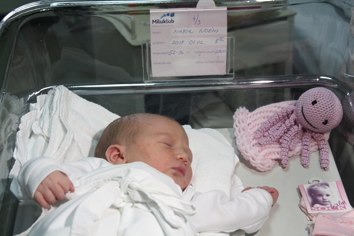 Kedden reggel született meg 2018 első kisbabája Pápán. Major Noémi 2018. január 2-án, 8 óra 55 perckor látta meg a napvilágot a Pápai Gróf Esterházy Kórházban.
