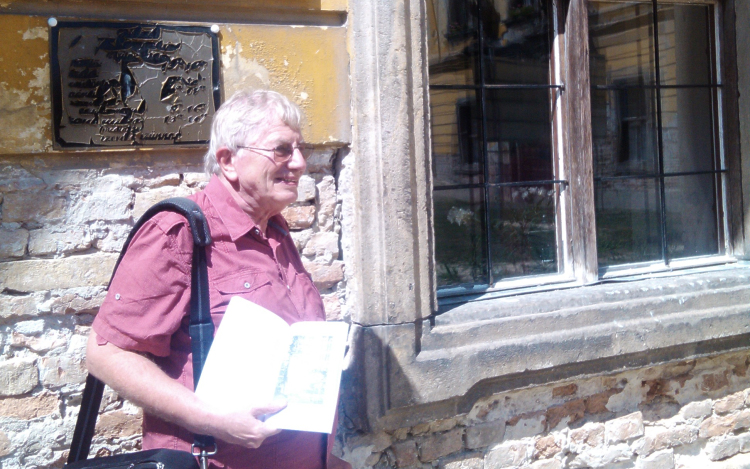 Ezen a nyolc évvel ezelőtti archív fotófelvételen Erős Ferenc professzor úr látható a pápai Esterházy-kastély – akkor még igen csúnya, romos – bejárata mellett lévő egyik ablaknál.