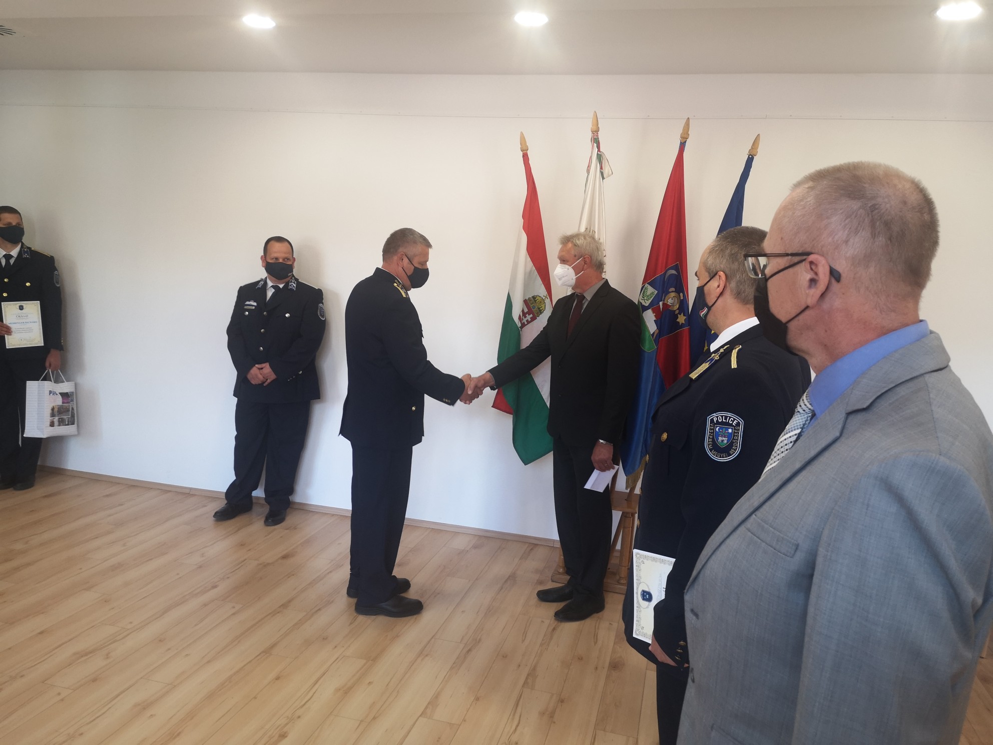 Dr. Áldozó Tamás Pápa, Pintér Imre Lovászpatona és Völfinger Béla Pápateszér polgármestere, valamint Regdon László, a Pápai Rendőrkapitányság vezetője gratulált a kiemelkedő teljesítményt nyújtó rendőröknek.