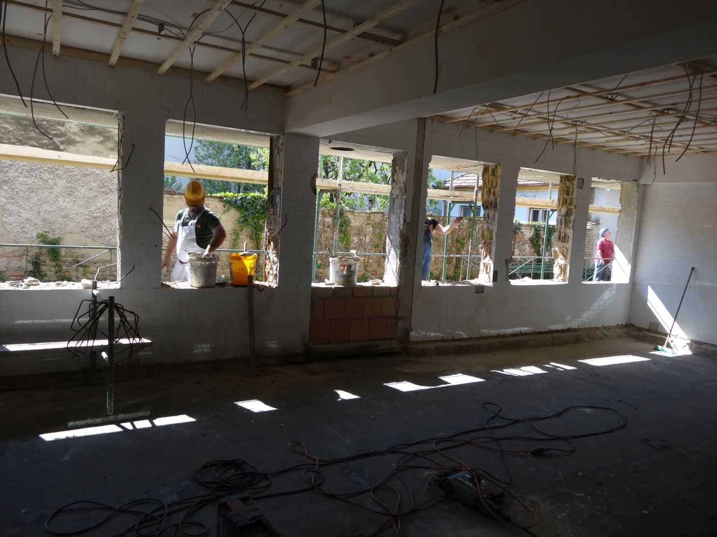 A felújítást végző cég ügyvezetőjétől megtudtuk, a feburár elsejei munkaterület átadást követően elsőként elvégezték a bontási munkálatokat, majd az új víz és csatornarendszert építették ki. Megépítették az új válaszfalakat, jelenleg a tető szigetelése és a nyílászárók cseréje zajlik, az épület előtt pedig a lift aknáját ássák ki, régészeti megfigyelés mellett. Az épület felújítása nagyjából 50%-os készültségi fokon áll - mondta el az ügyvezető.