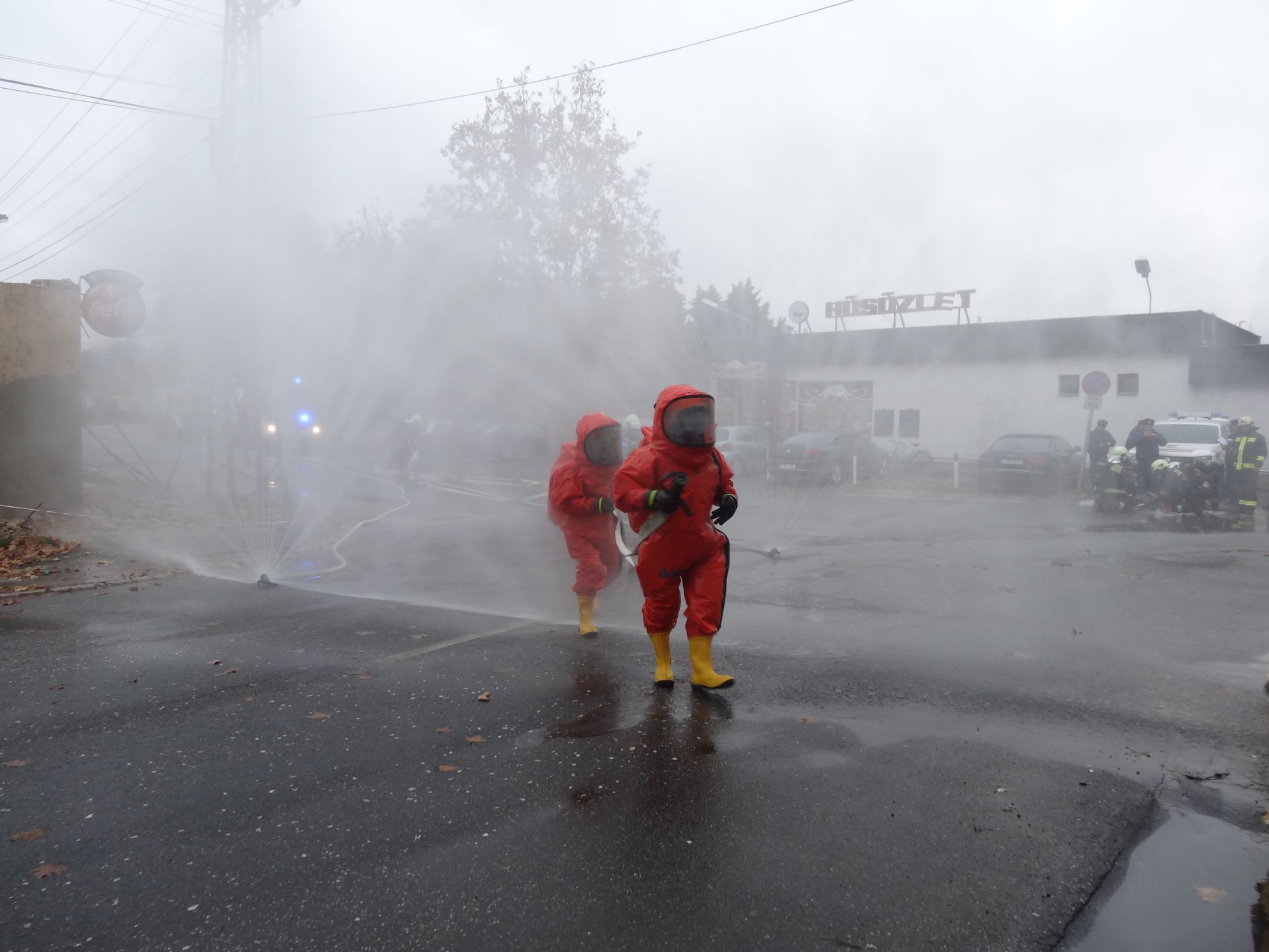 A rendőrség lezárta a húsgyár környékét, számos tűzoltóautó vonult a helyszínre, a Városházán pedig összeült az Operatív Törzs. Szerencsére csak szimulálták a katasztrófahelyzetet, egy összehangolt gyakorlat során.