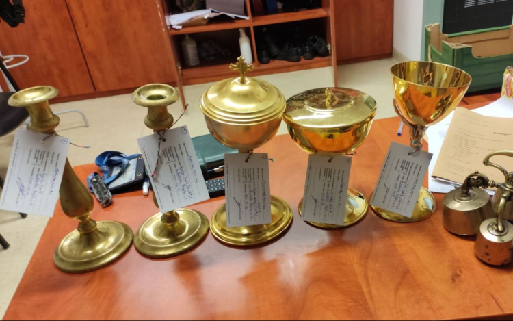 A rendőrök megtalálták a lopott kegytárgyakat a férfi ismerősénél, akit szintén előállítottak. Ő azt mondta, fogalma sem volt arról, hogy a tárgyak bűncselekményből származnak.