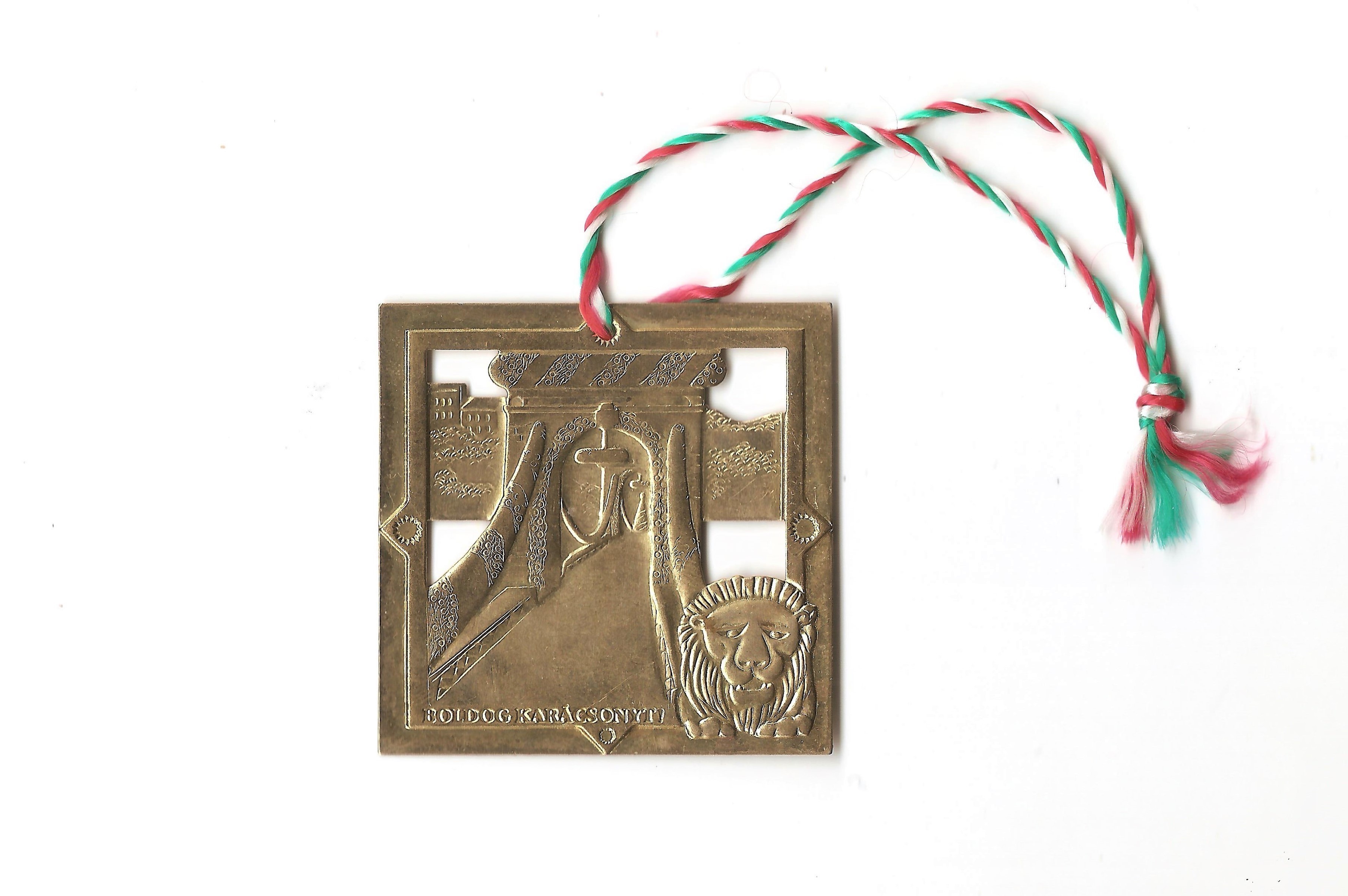 A Buda és Pest közötti állandó összeköttetést biztosító legrégibb, legismertebb dunai hidunkat, a magyar főváros egyik jelképét, a Széchenyi Lánchidat jeleníti meg Boldog karácsonyt! – felirattal. Idén, késő ősszel avattuk fel a pápai ipartestületi székházon gróf Széchenyi István bronz reliefjét, melyen a Lánchíd sziluettje is megjelenik (https://www.infopapa.hu/hirek/olvas/a-modern-magyarorszag-alapjainak-lefektetoje-grof-szechenyi-istvan-dombormuvet-kapott-papan-2022-10-21-122515); ezért is gondoltam most ezt érdekességképpen megmutatni.