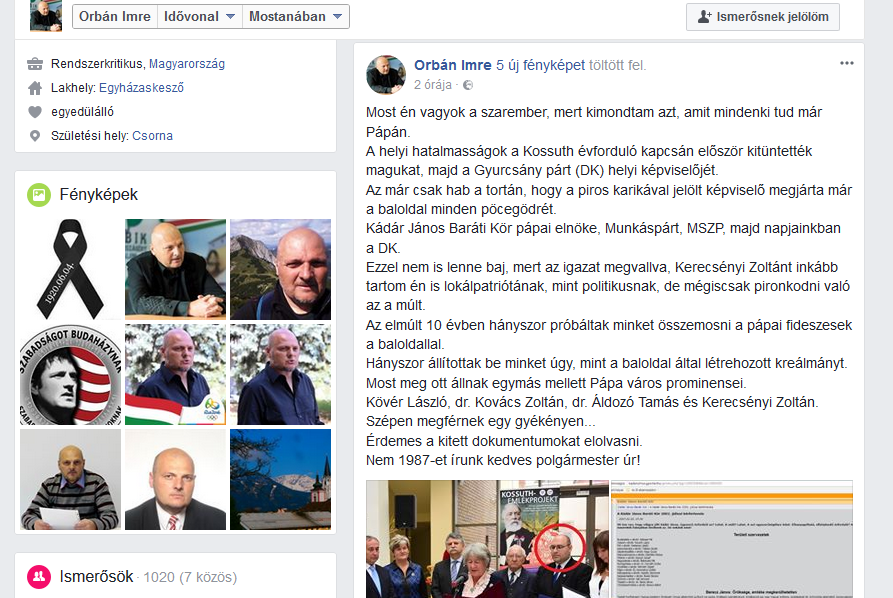 Azt tetszett írni, hogy "Az elmúlt 10 évben hányszor próbáltak minket összemosni a pápai fideszesek a baloldallal. Hányszor állítottak be minket úgy, mint a baloldal által létrehozott kreálmányt. Most meg ott állnak egymás mellett Pápa város prominensei."