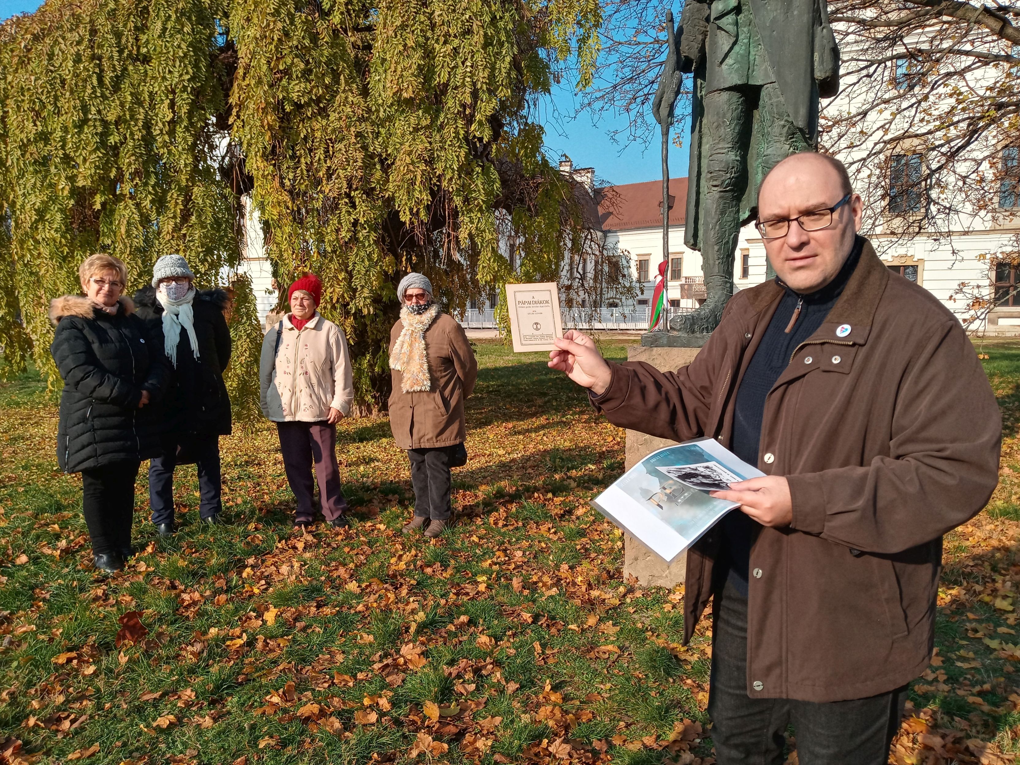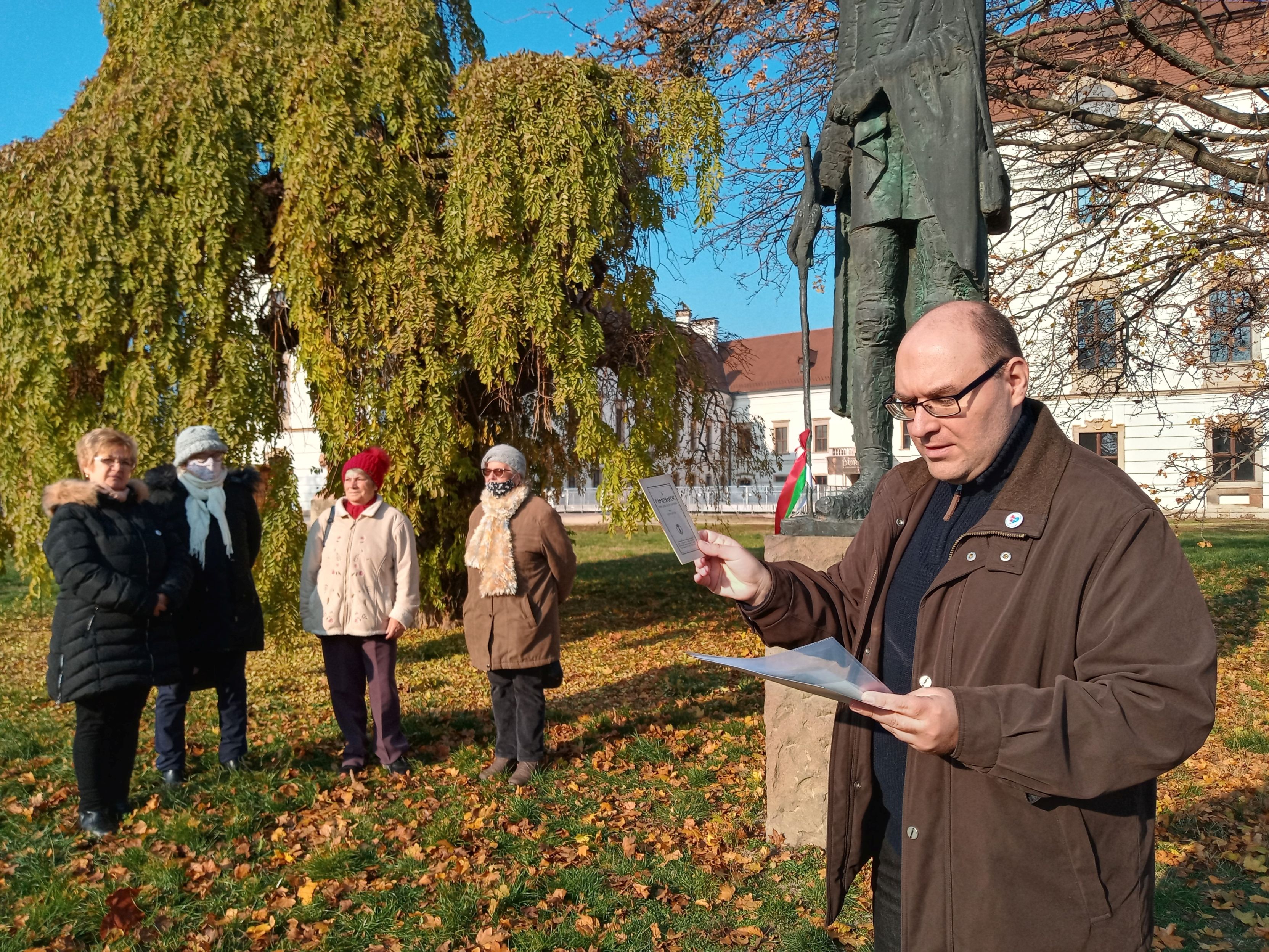A pápai Esterházy-kastély előtti Petőfi-szobornál Kerecsényi Zoltán lokálpatrióta, az Elsősorban pápai Városbarát Egylet (EpVE) ügyvivője tartott tájékoztatót 2021. november 25-én, csütörtökön, civil közösségük Petőfi vonatkozású emlék-kezdeményezéseiről.