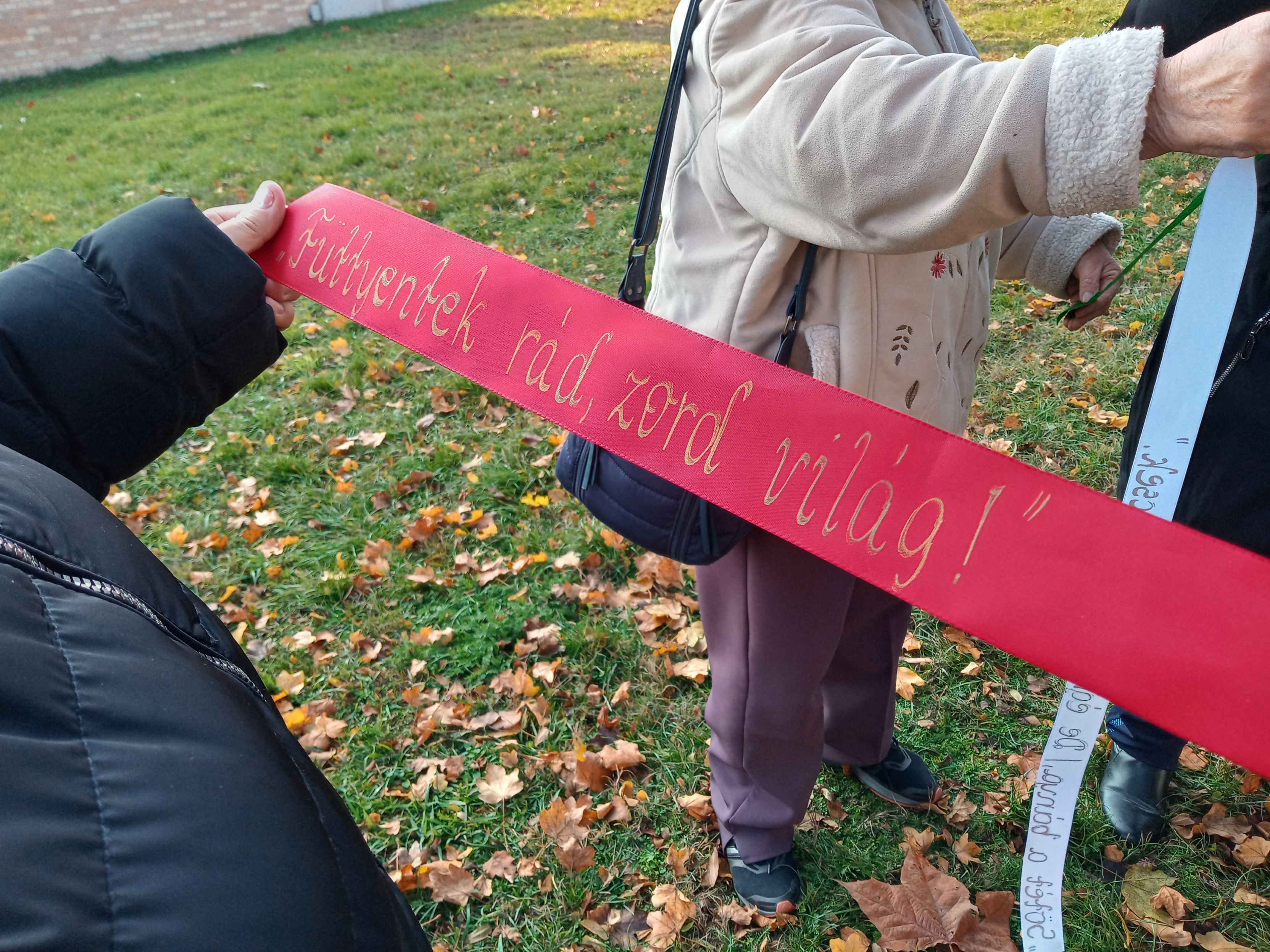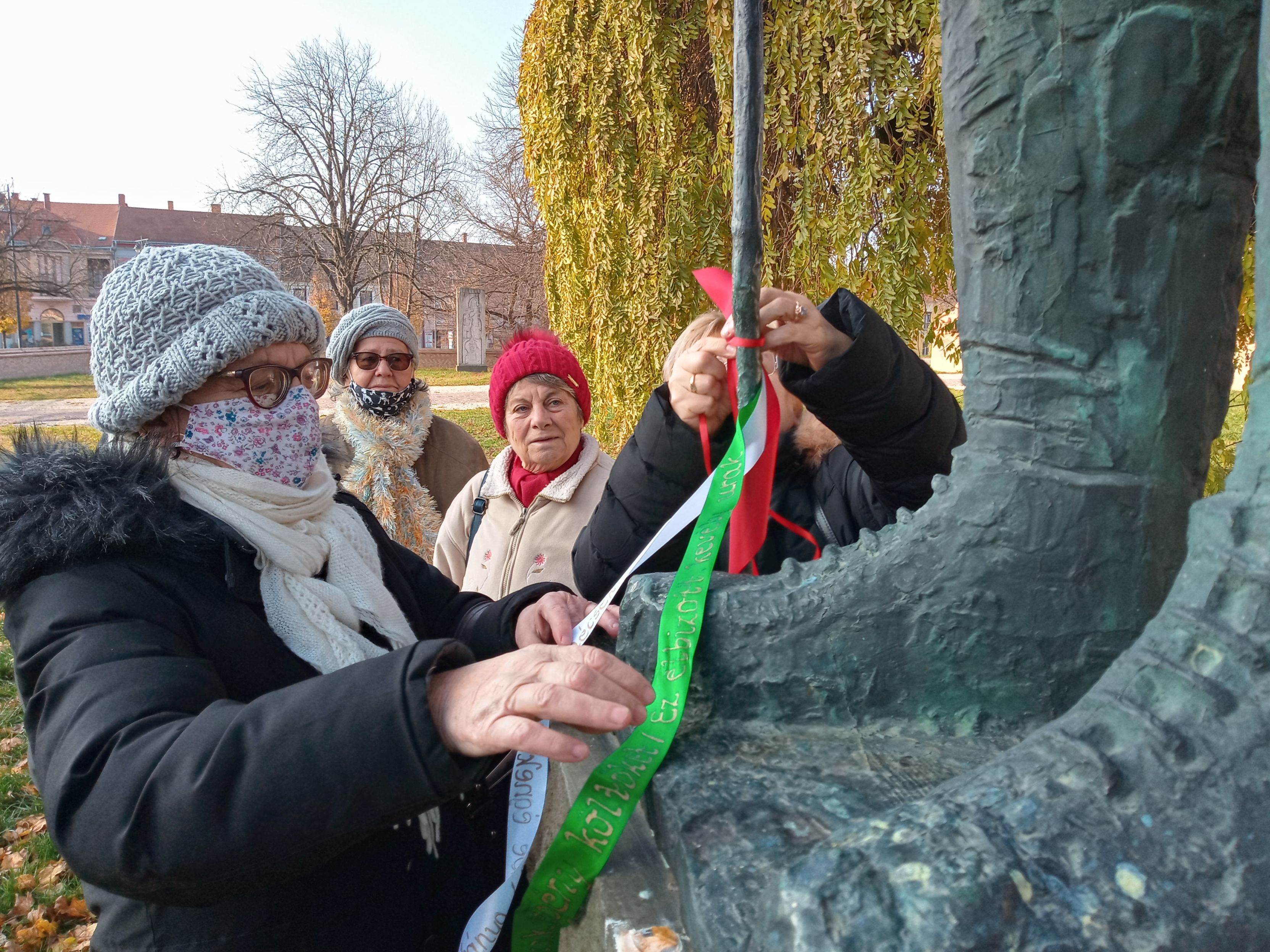 Ezért elindítjuk a „Köss egy szalagot Petőfi vándorbotjára!” című helyi „jelképes” irodalmi-lokálpatrióta mozgalmat. Ki-ki a számára kedves-kedvenc Petőfi versidézetét ráírhatja otthon egy-egy szalagra, s azt ide, a kastély előtti Petőfi-szoborhoz elhozhatja, Petőfi vándorbotjára rákötheti; e formán az errefelé járó, a szobor előtt megálló embertársainkat olvasásra, gondolkodásra késztetheti. S ha összegyűlne egy szép nagy köteg ezekből az emlékszalagokból jövő ilyenkorra – s ha egyesek beteges kleptokráciája nem hatalmasodna el, mint az utóbbi hónapokban és hetekben is egyleti emlékkoszorúink ellopkodása tekintetében –, akkor azokat akár egy csokorban a városi múzeumnak adnánk le megőrzésre. Az első három Petőfi-idézetes emlékszalagot az egylet három önkéntes hölgye kötötte fel.