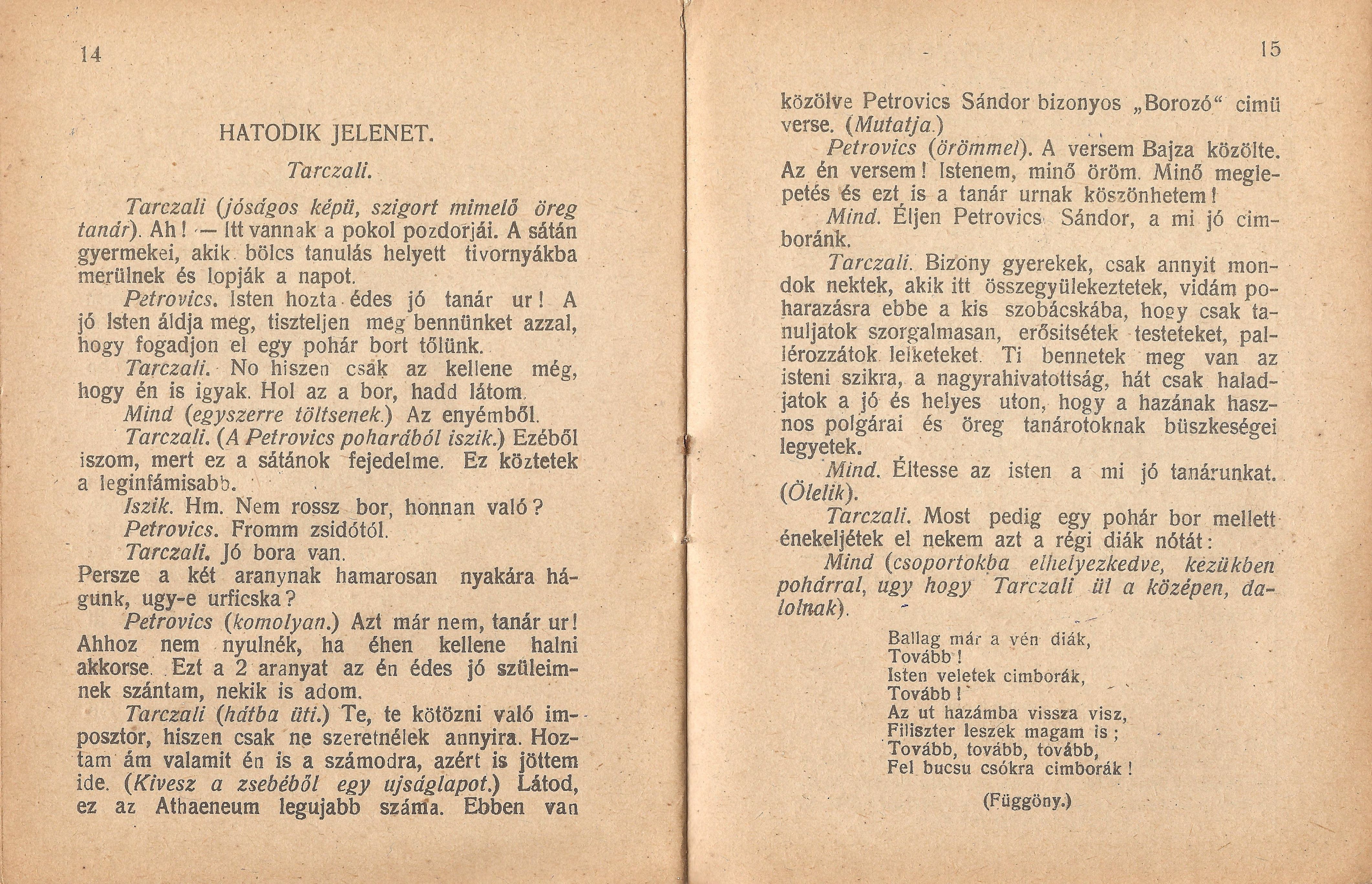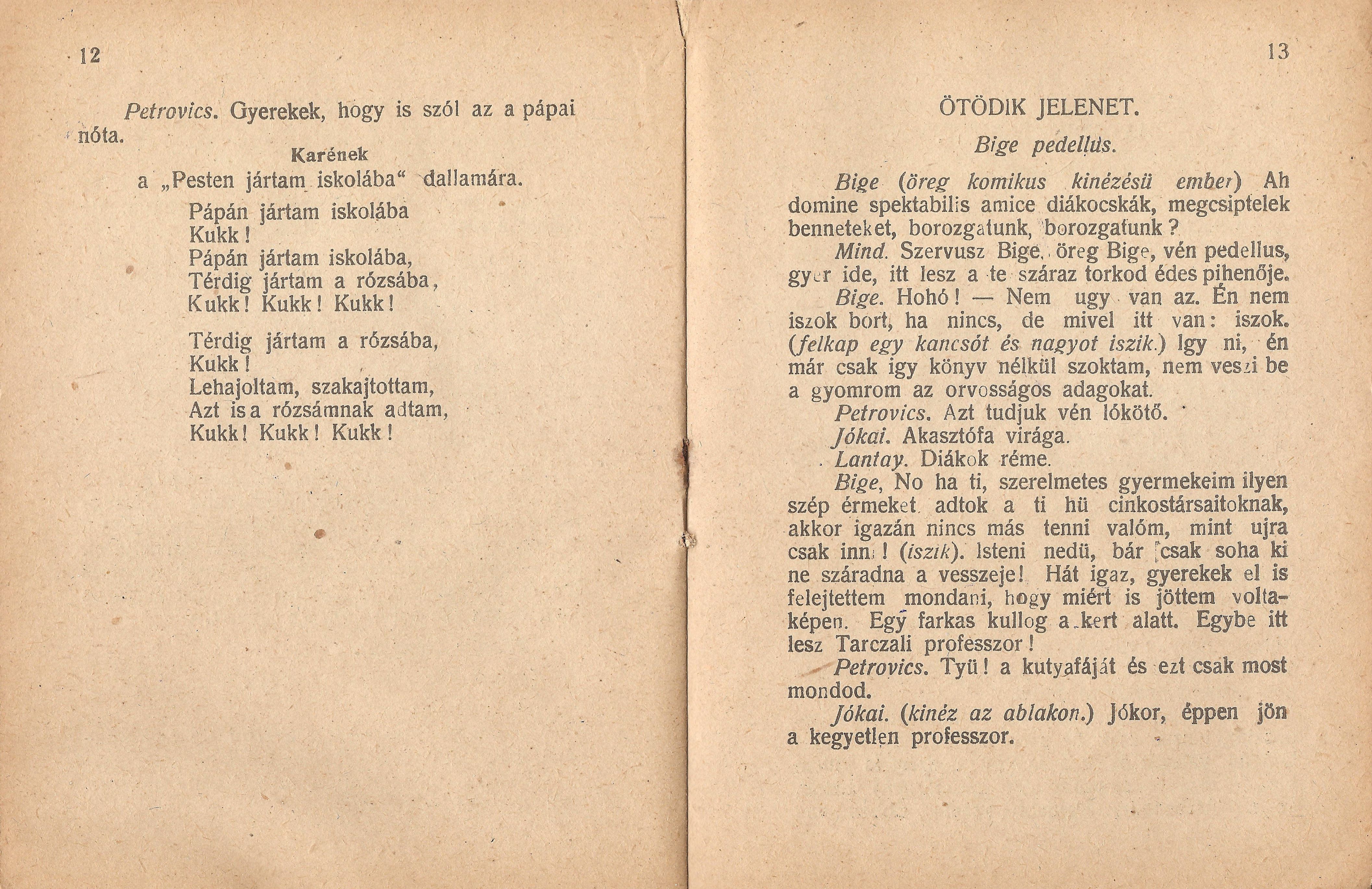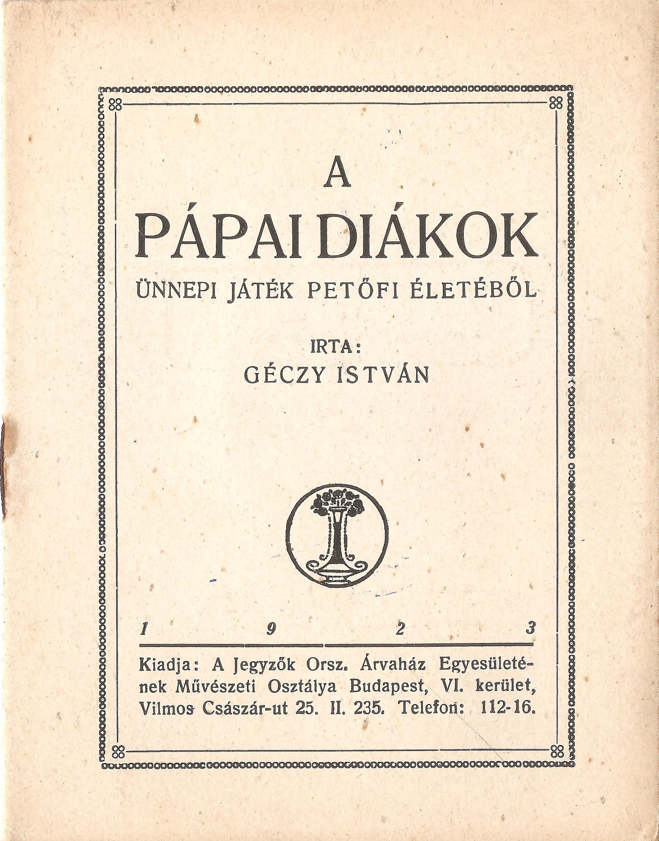 Géczy István: „A pápai diákok – Ünnepi játék Petőfi életéből” (1923) – letölthető oldalak: