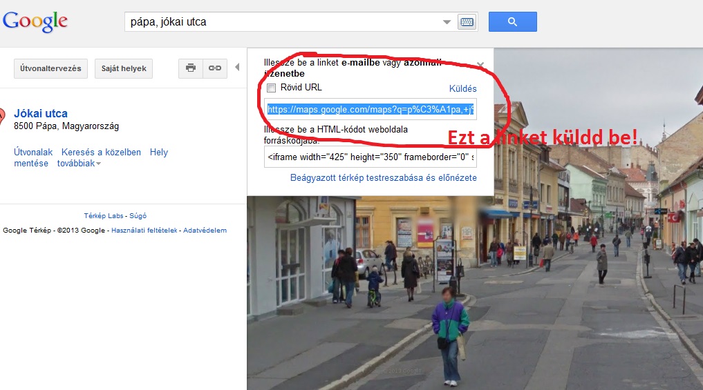 A képen bekarikázva látható kicsi emberkét kell a térkép azon részére húzni, ahol az utcaképet látni szeretnénk!
