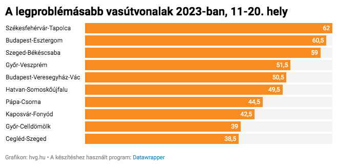 A HVG szedte össze a legproblémásabb vasútvonalak listáját 2023-ból. Kilométerarányosan a Pápa-Csorna vonal a harmadik legproblémásabb az országban.