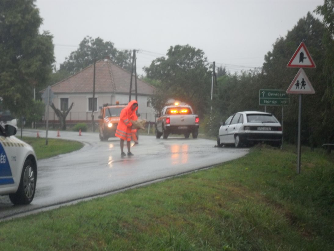 A helyszínelés és a műszaki mentés idejére teljesen lezárták az utat Pápakovácsi belterületén, ahol két személyautó ütközött hétfő délután.