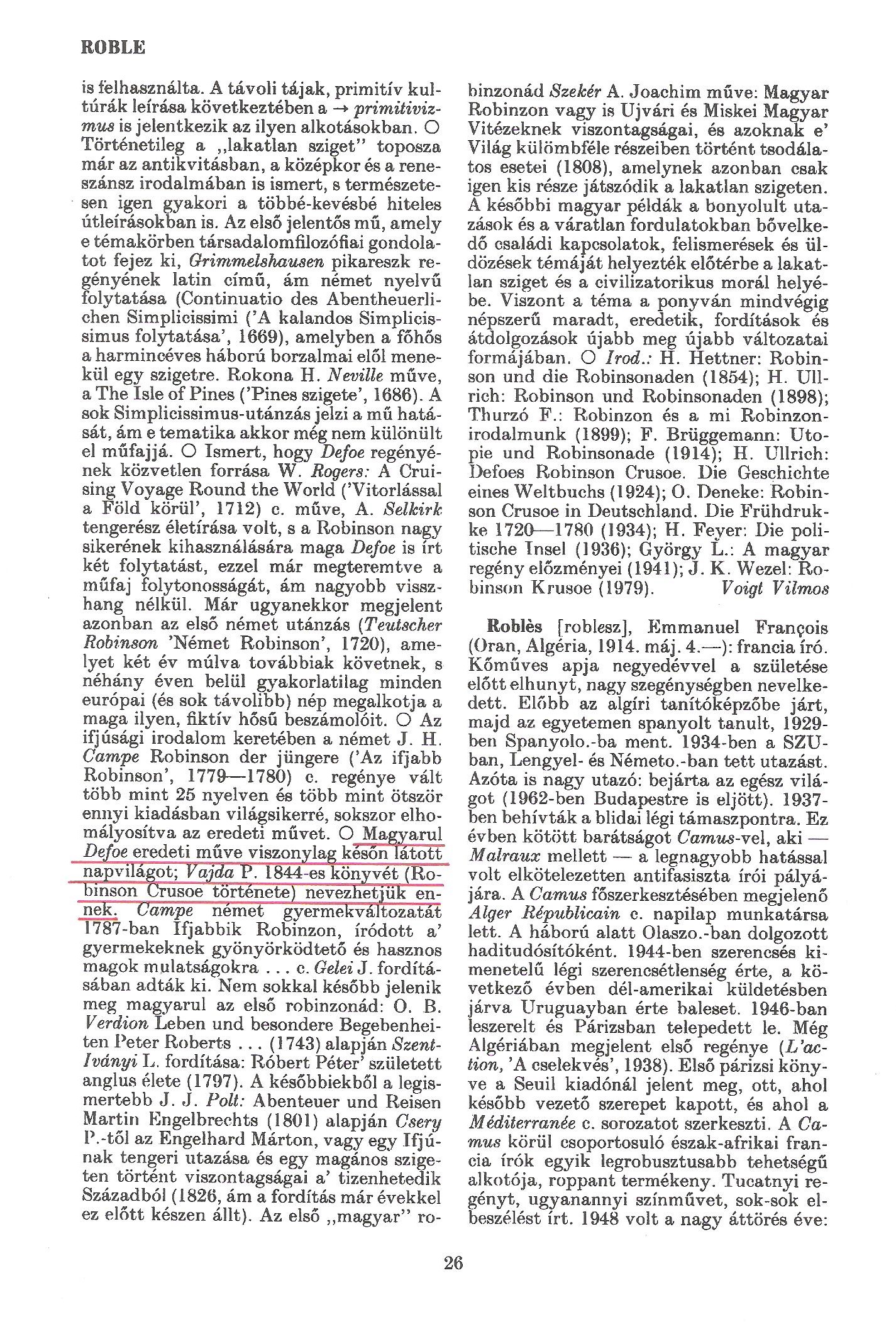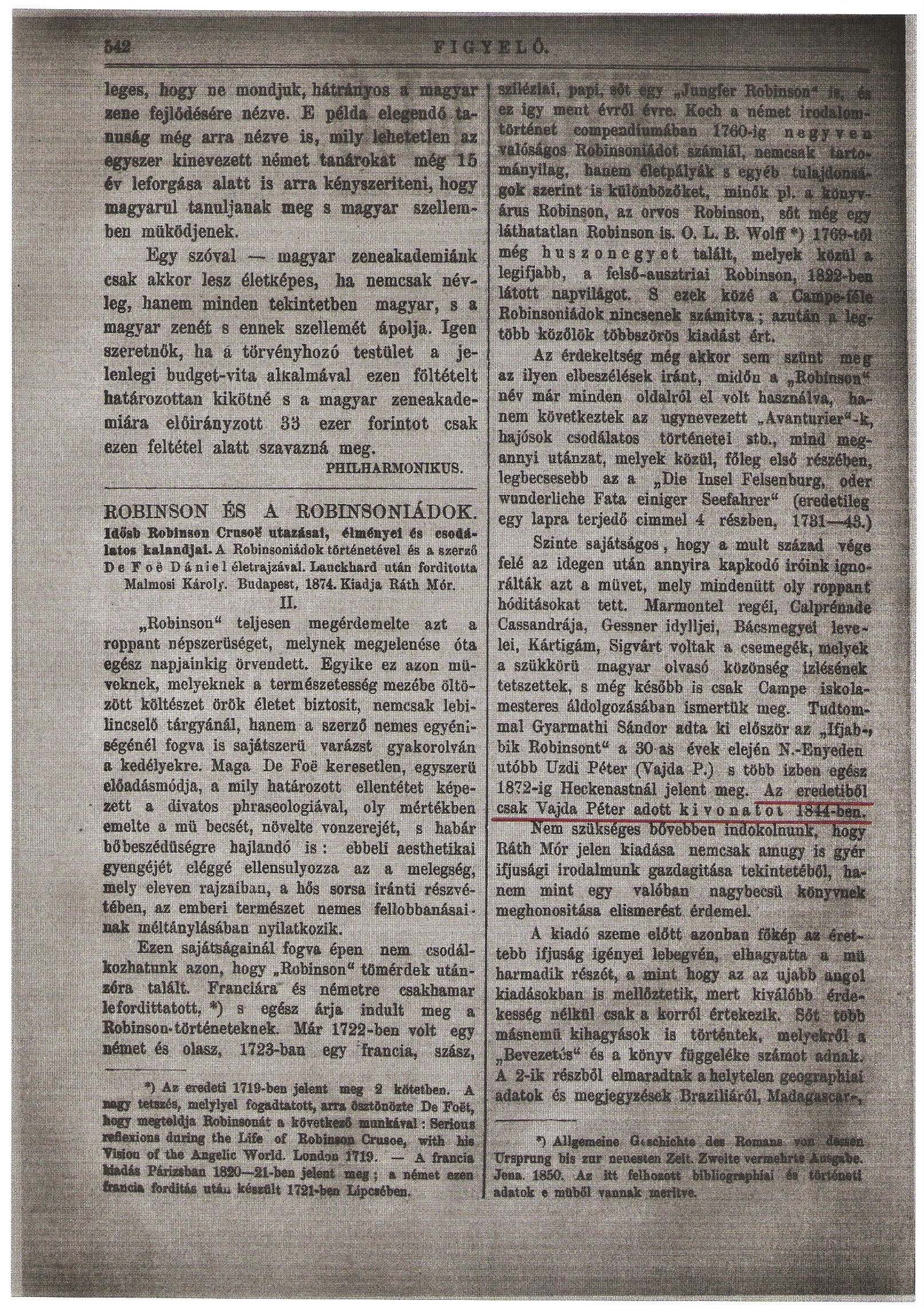 - Névy László: Robinson és a Robinsoniádok. = Figyelő, 1874. IV. évf. 46. szám, 542. p.