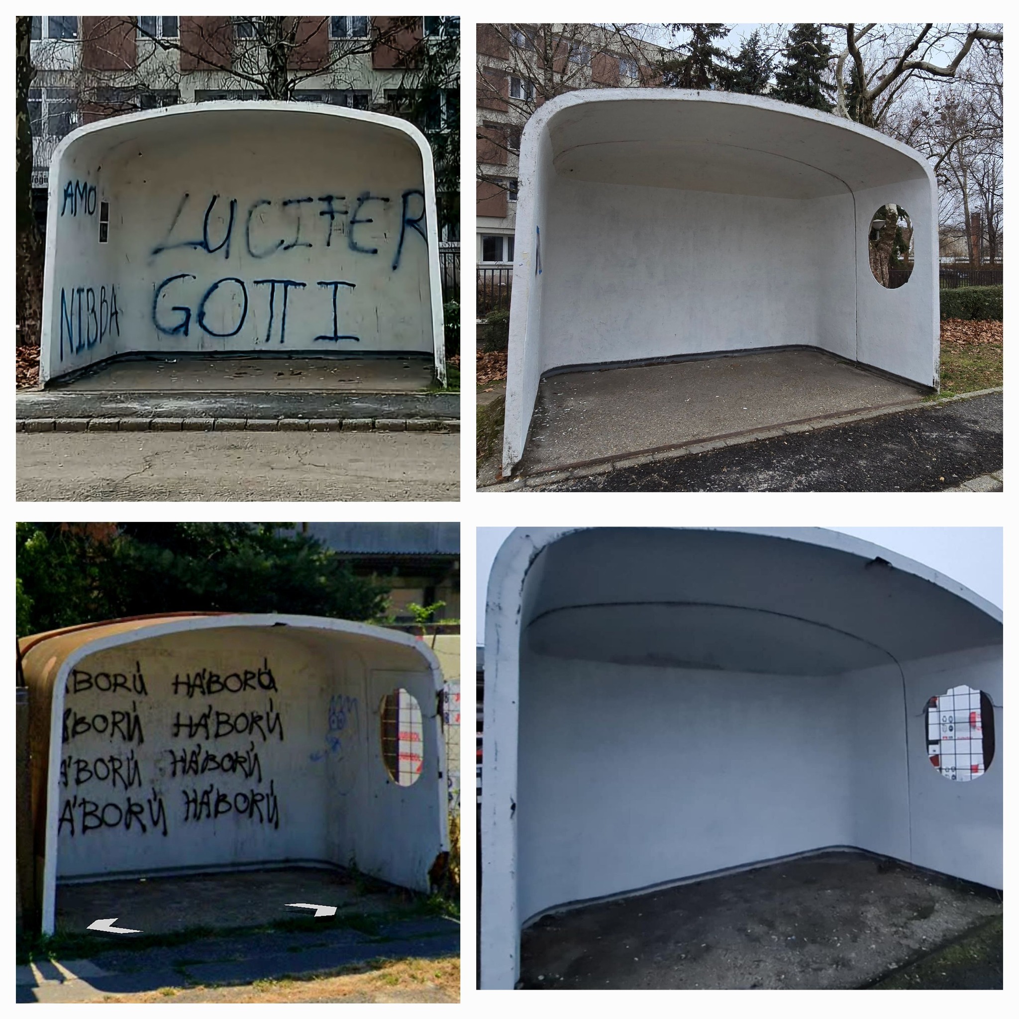 Két pápai buszvárót is graffitikkel csúfítottak el, az önkormányzat kifesttette azok belső terét.