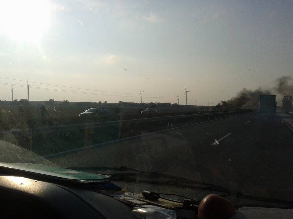 Egy kigyulladt személygépkocsi miatt csak a belső sávon halad a forgalom a Budapest felé vezető oldal 81. kilométerszelvényénél.