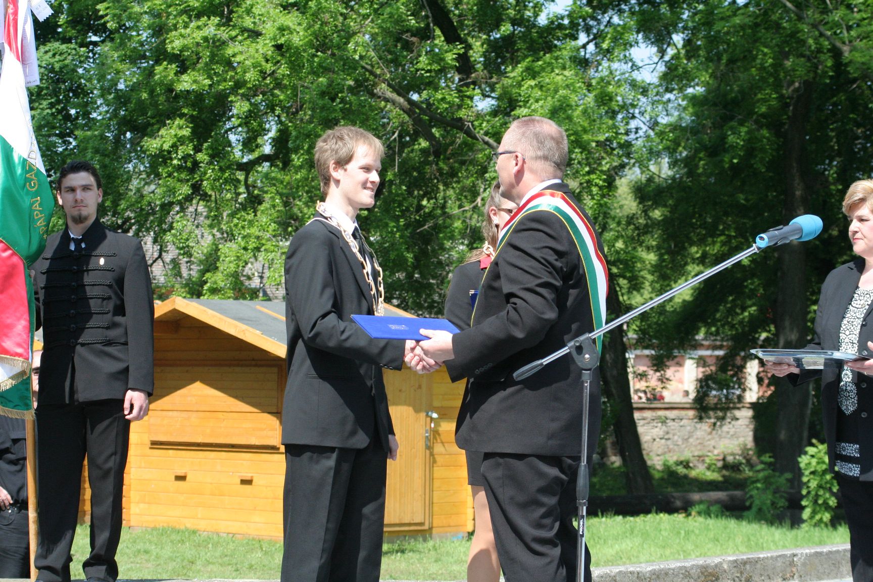 A beszédeket követően Áldozó Tamás - a hagyományokhoz hűen - minden ballagó diákot Pápa város felnőtt polgárai közé fogadott.Ebből az alkalomból a polgármester két végzősnek, Kálmán Klaudiának, az Acsády Ignác Szakképző Iskola diákjának és Amberger Dánielnek átadta az eseményt szimbolizáló, a város címerével díszített láncot és emléklapot.