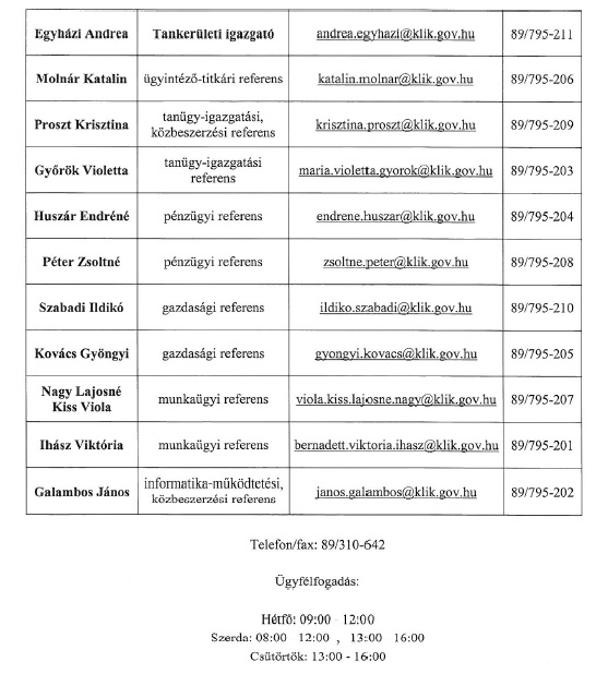 Klebelsberg Intézményfenntartó Központ Pápai Tankerületének (KLIK Pápa) telefonszámai.