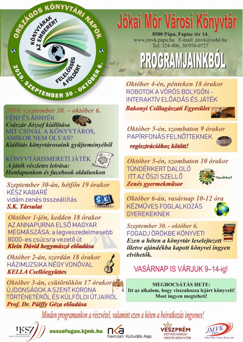 Az Országos Könyvtári Napok pápai programjait pedig az alábbiakban láthatja: