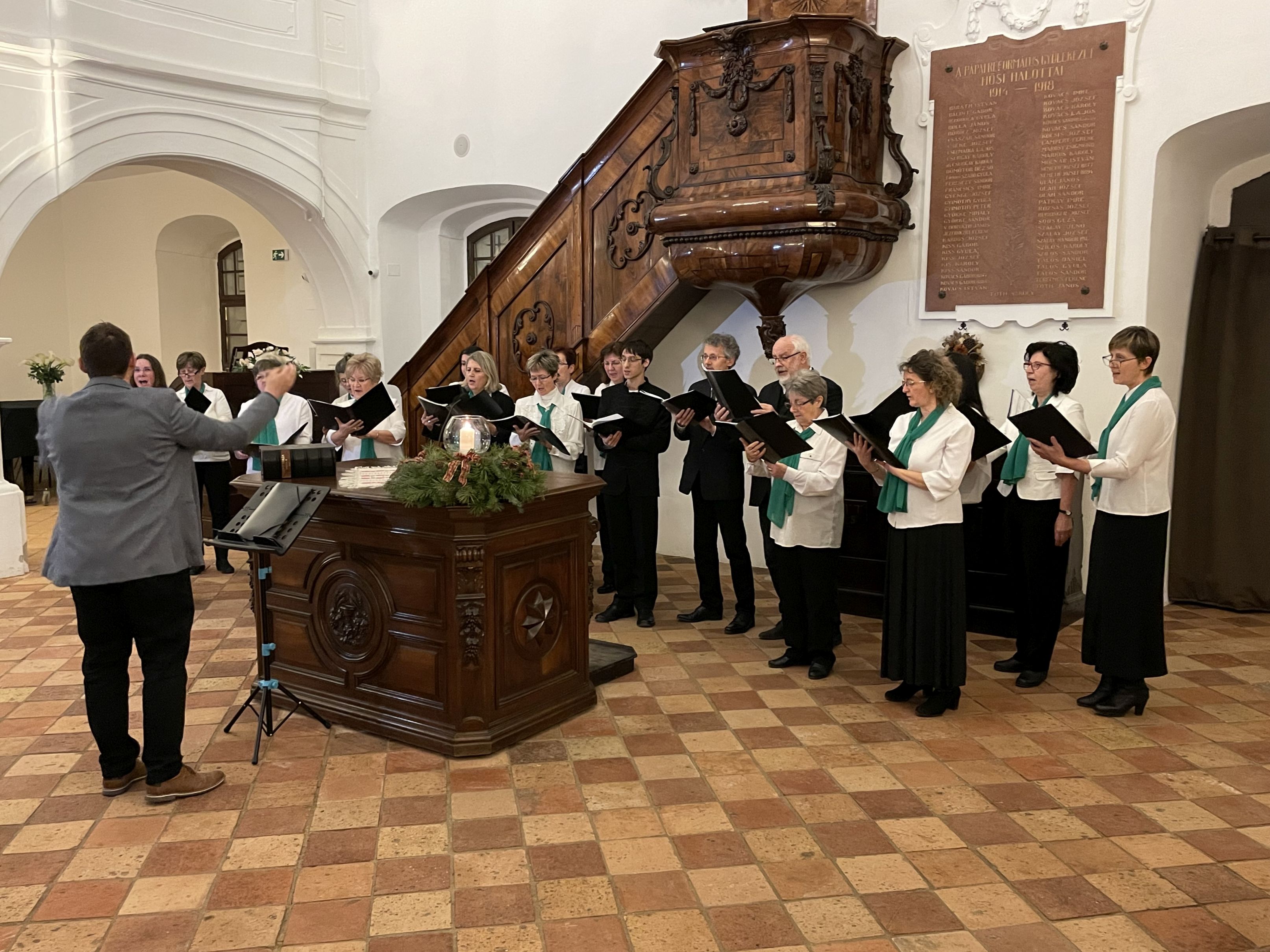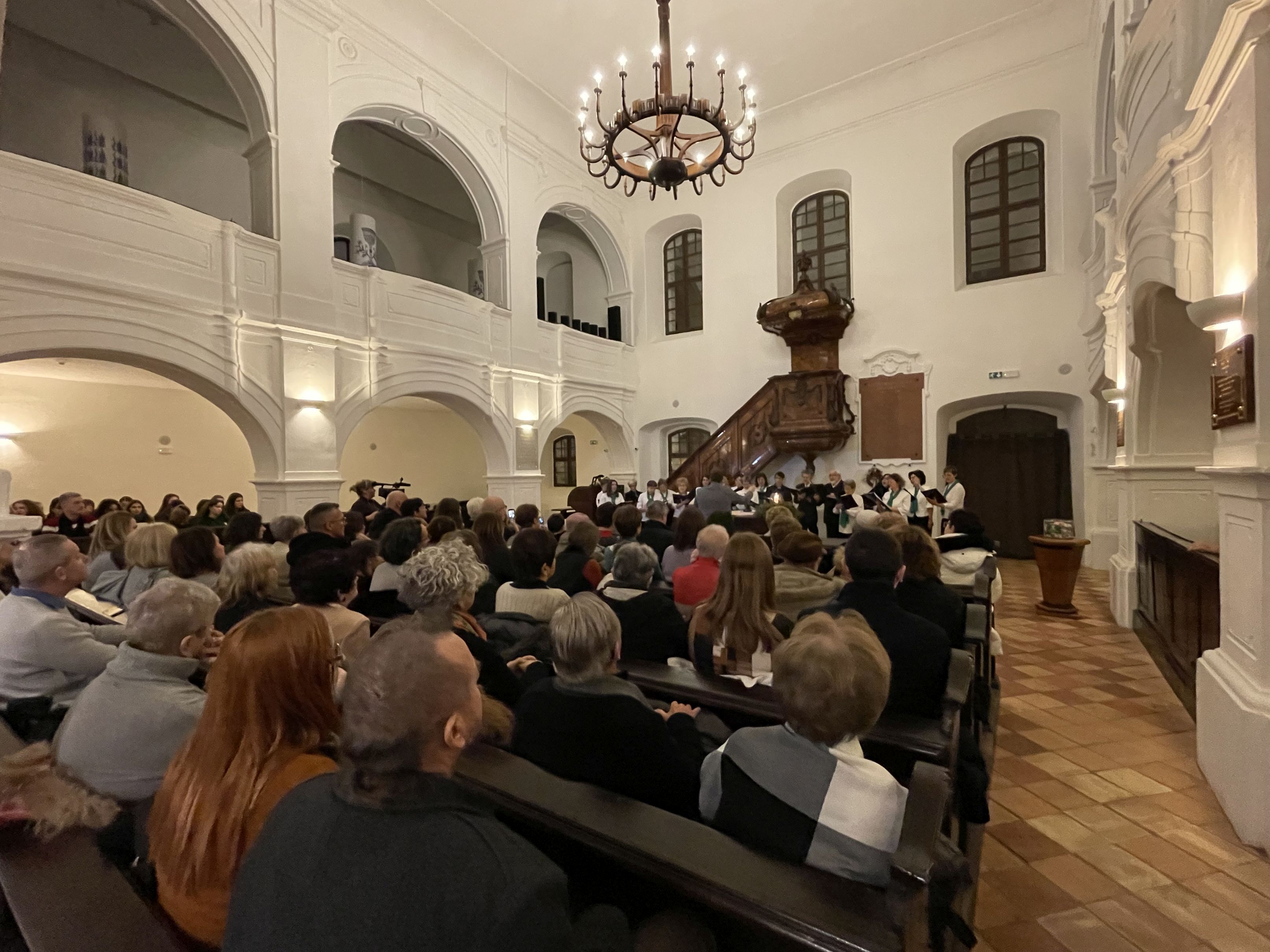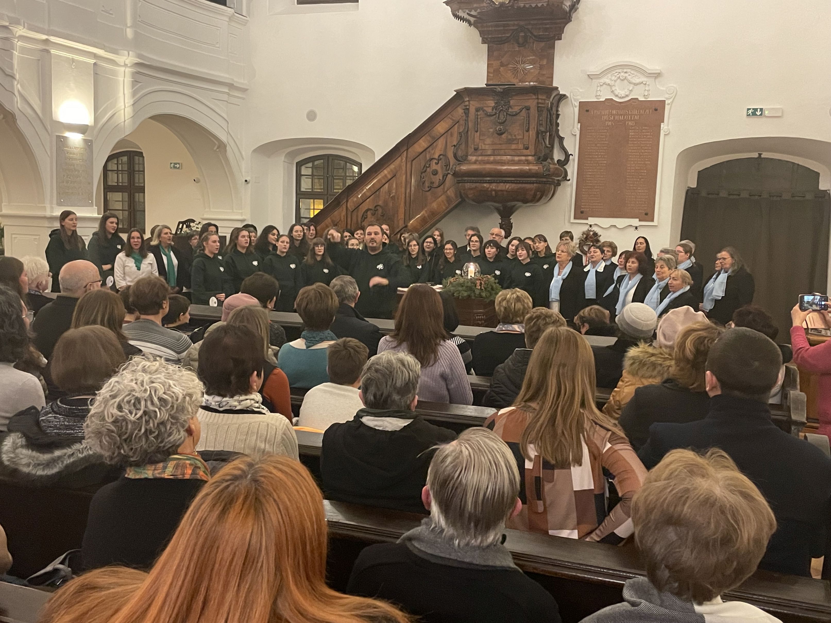 Egyház kórusműveket és karácsonyi énekeket hallhatott a közönség a meghitt hangulatú rendezvényen, amelyen közreműködött a Séllyei István Énekkar, az Evangélikus Egyházközség Kórusa, valamint a refis diákokból álló Parlando Leánykar, végül pedig örömzenélés keretében a közönség is bekapcsolódhatott az előadásba.