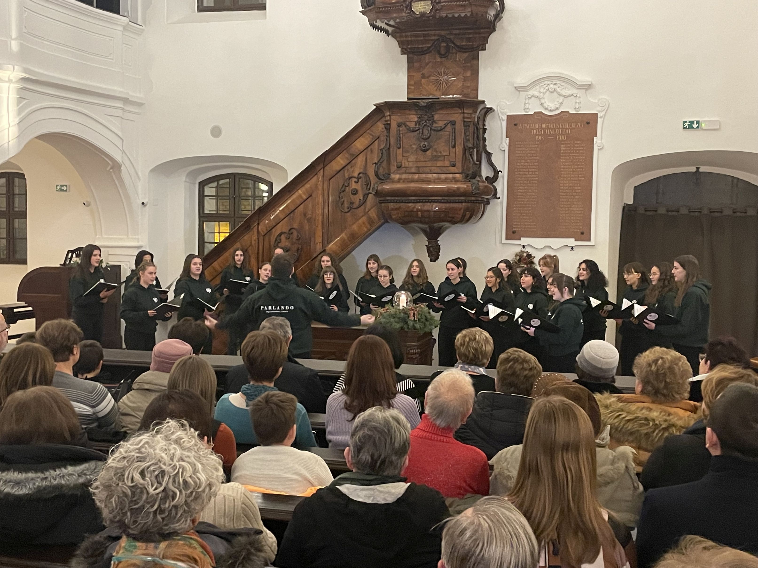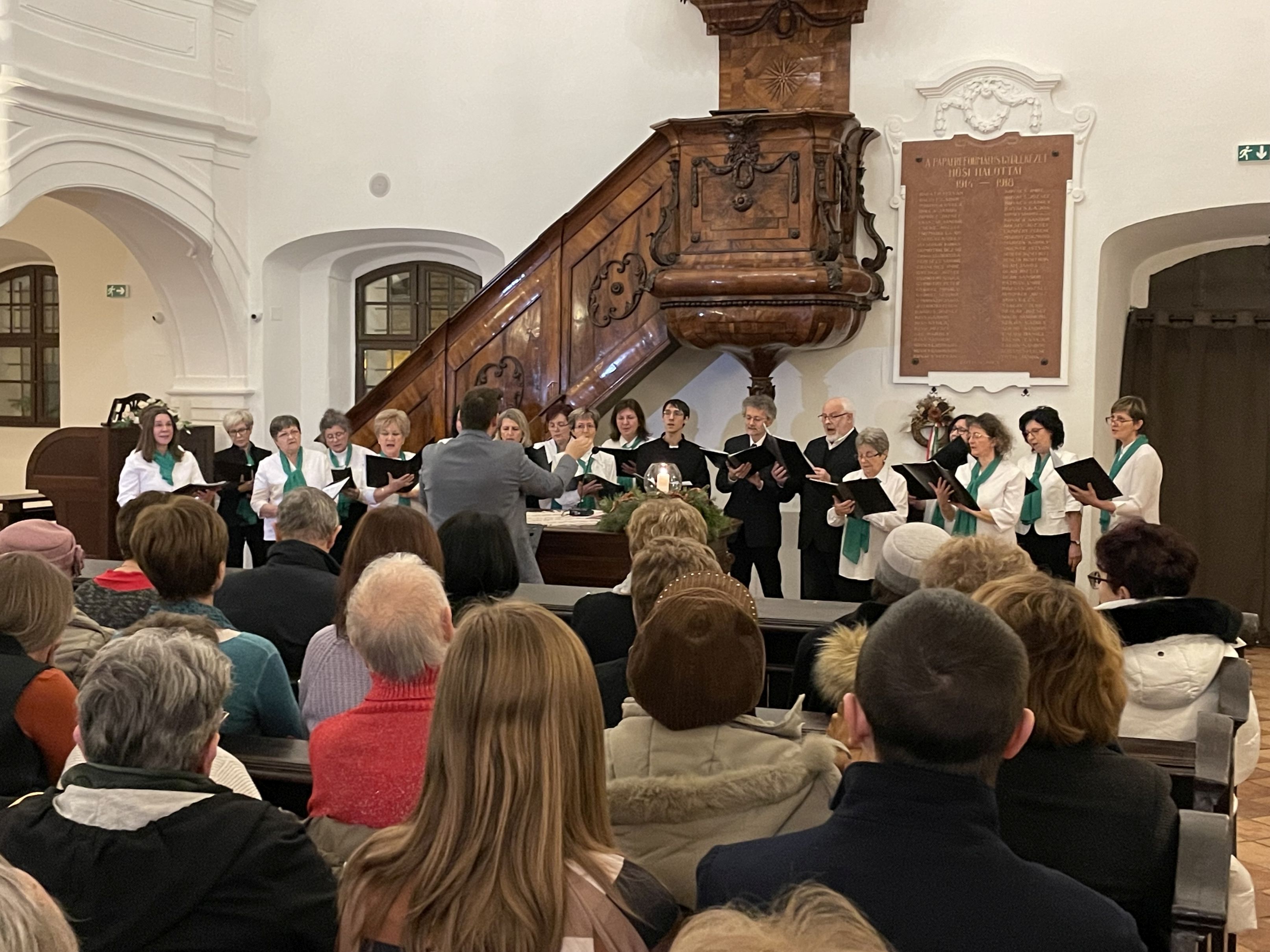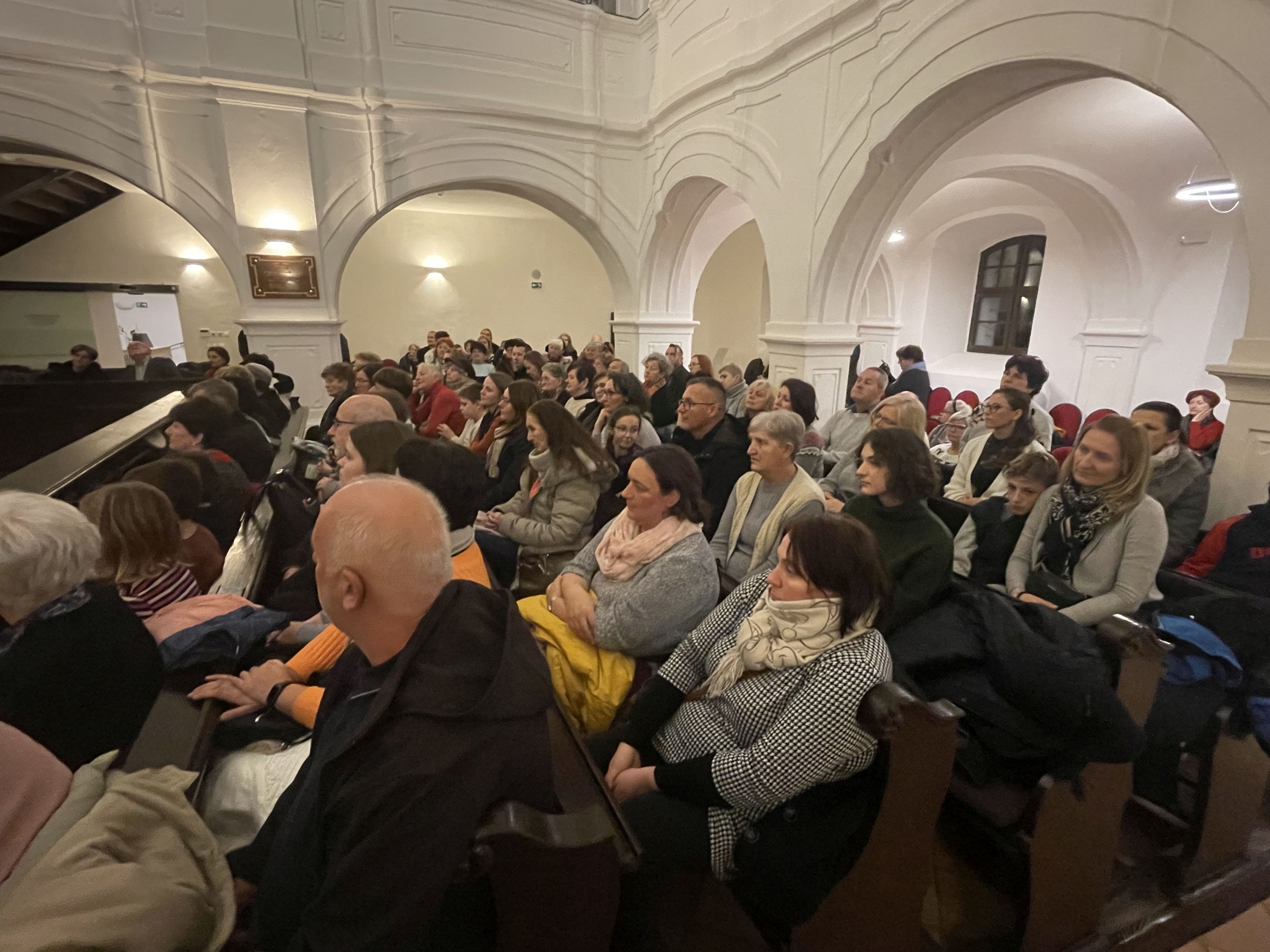 Egyház kórusműveket és karácsonyi énekeket hallhatott a közönség a meghitt hangulatú rendezvényen, amelyen közreműködött a Séllyei István Énekkar, az Evangélikus Egyházközség Kórusa, valamint a refis diákokból álló Parlando Leánykar, végül pedig örömzenélés keretében a közönség is bekapcsolódhatott az előadásba.