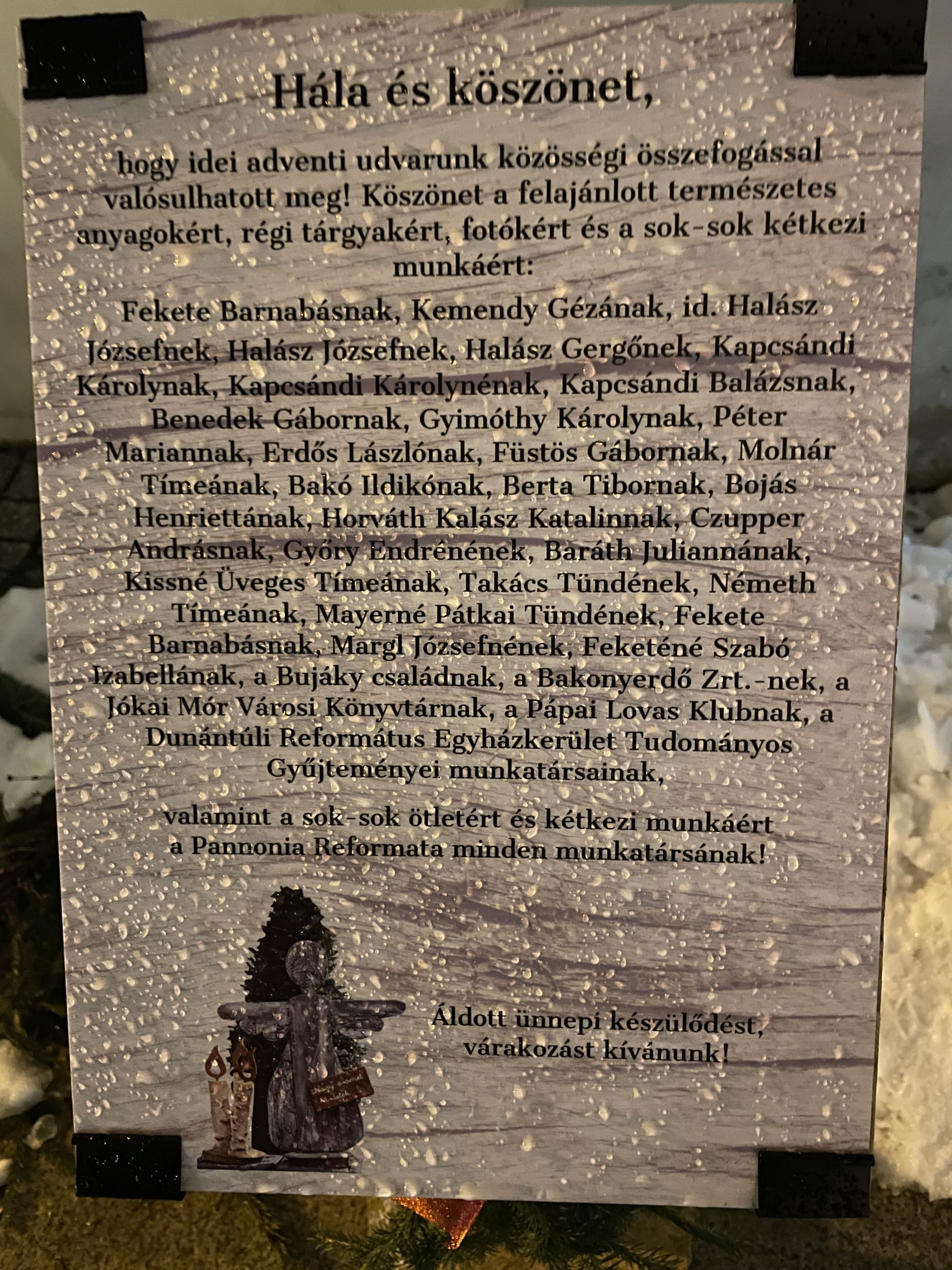Halászné Kapcsándi Szilvia, a múzeum vezetője köszöntötte a népes közönséget, az igei gondolatokat pedig Köntös László tolmácsolta a jelenlévőknek. A Református Gyűjtemények igazgatója az Üdvözítő jelenlétéről beszélt, aki a valódi örömet jelentheti nekünk, embereknek, vele kaphatjuk meg ugyanis az örök életet, nélküle pedig csupán az elmúlás várhat ránk.