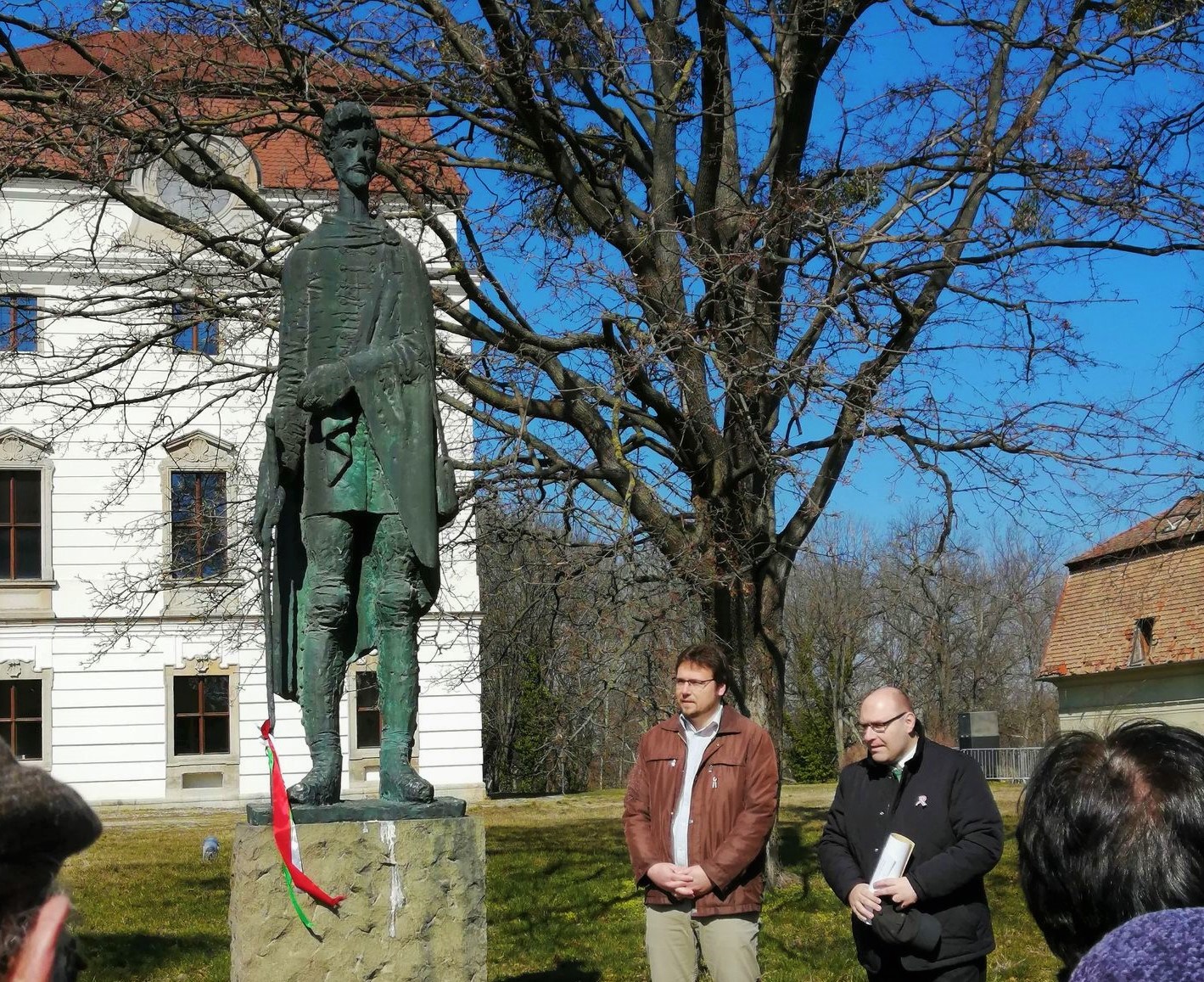Tehát egy kicsit gondolkodásra szeretnénk buzdítani Petőfi versein keresztül; azt szeretnénk, ha a pápaiak ezen Petőfi-emlékévekben sok Petőfit olvasnának. S ha például megszeretnének egy-egy tőle lévő gondolatot, akkor azokat meg is osztanák embertársaikkal. Nemcsak a „fészbúk” közösségi hálózaton, hanem hagyományosnak mondható módokon is, például ekképp, hogy elhozzák versidézetes-üzenetes emlékszalagjaikat Petőfi vándorbotjára – osztotta meg gondolatait Kerecsényi Zoltán, aki szerint néhai Somogyi József Kossuth-díjas szobrászművész, hajdani pápai református kollégiumi növendék kastély előtt álló bronz Petőfije a leghitelesebb pápai Petőfi. A vándorló, a soproni kaszárnyából, az erdőn-mezőn, a Rábán, a Marcalon átkelő, a Pápára érkező, betegségtől csontig soványodott, komor fiatalembert személyesíti meg; a „hús-vér” Petőfit. Azt, aki oly sok csalódás, bántás, útkeresés után szinte teljesen kilátástalanul ott állt unokabátyja, Orlai Petrich Soma előtt 1841. március elején, akiből aztán egy év leforgása után itt lett költő, itt lett Petőfi.