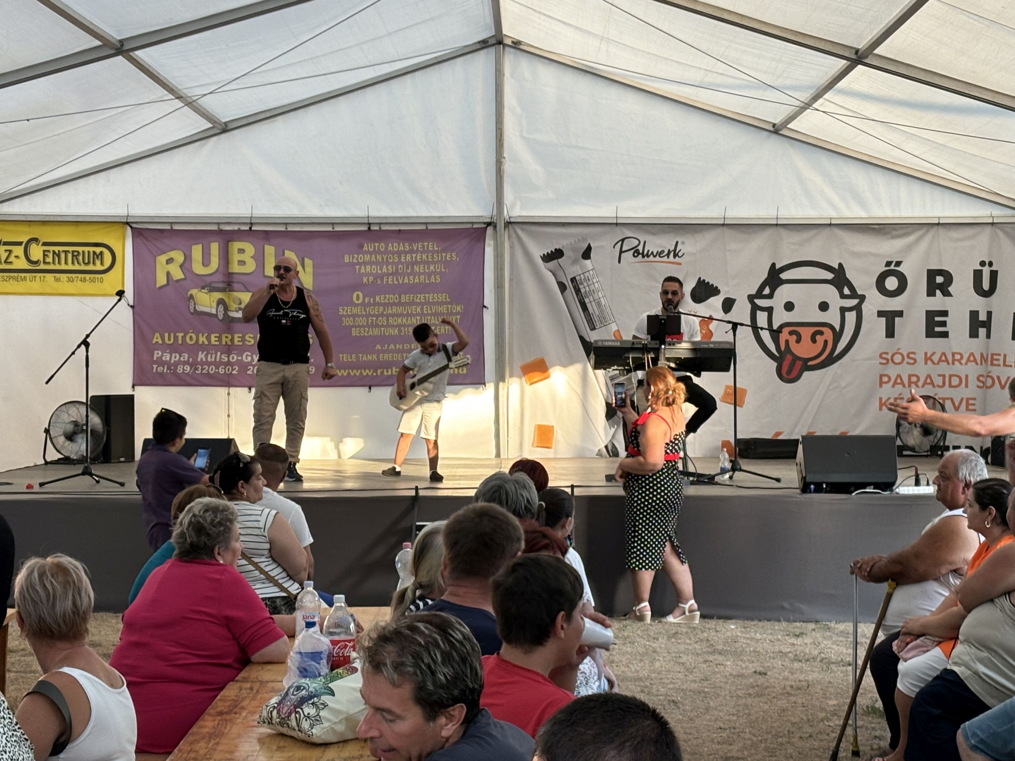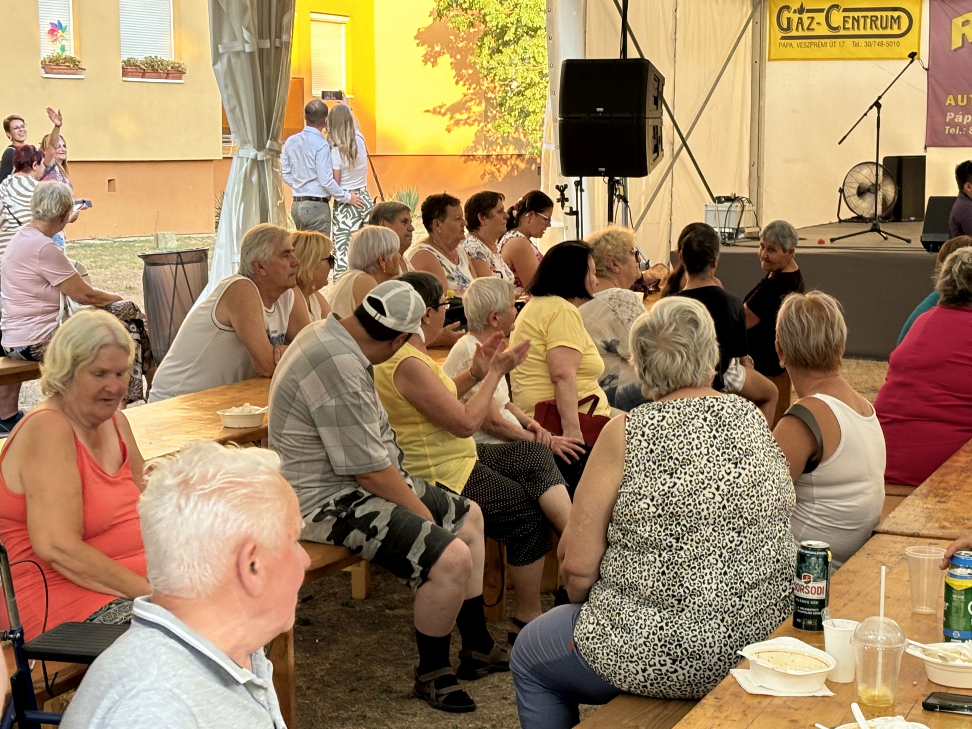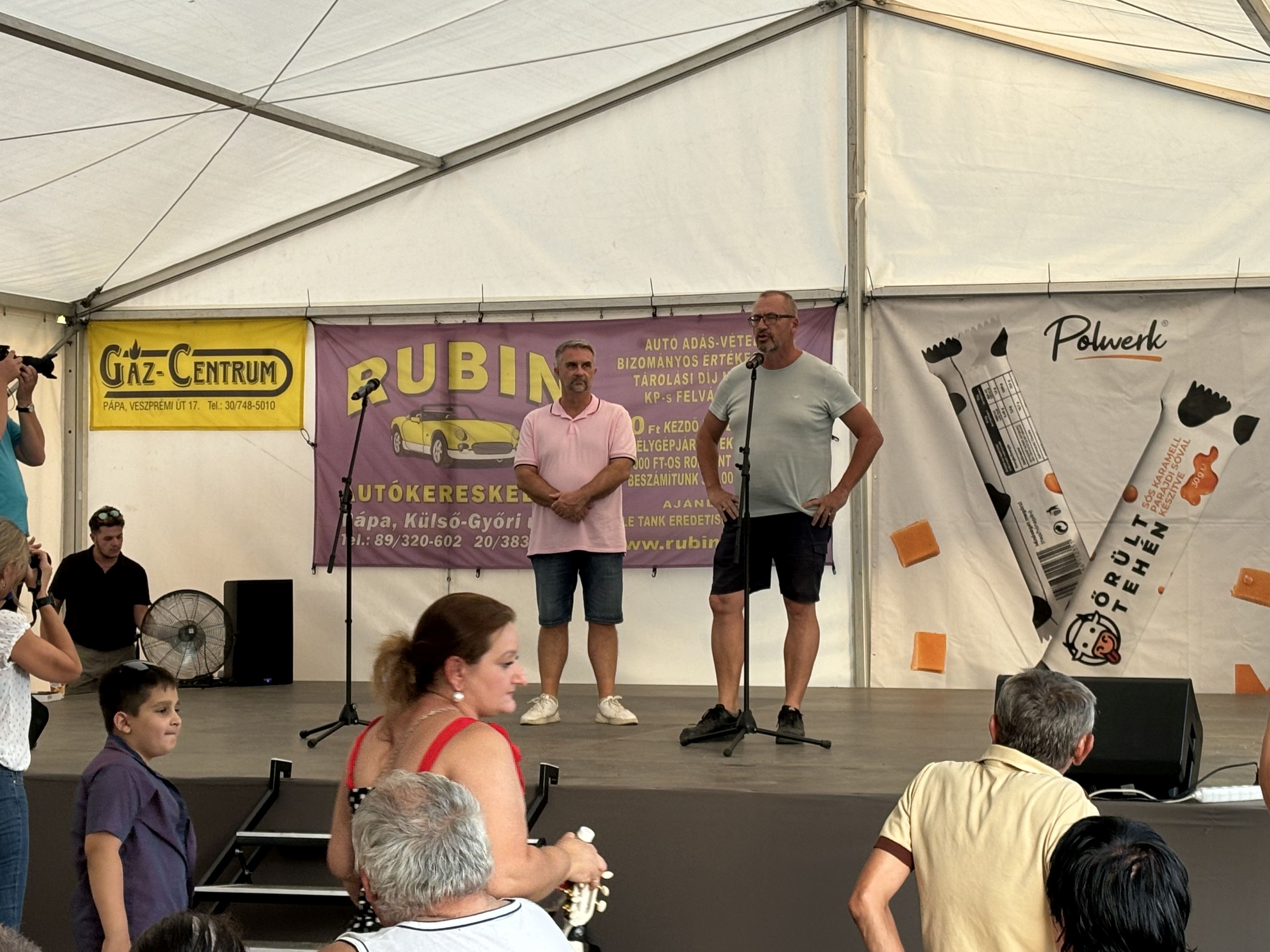 Szép számban érkeztek a rendezvény vendégei, a nagy meleg ellenére is. A finom étel és a jótékonyság mellett a színpadi programok és a különböző játékok is csábítóak voltak. Már déltől egymást követték a fellépők a színpadon, Tóth Tünde, a Ritmus BT, a Hazai vegyespálinkások, a Két ütem, a Tündérkert daloló Szabó Andreával, a Pápai Vadvirág Művészeti Egyesület, a Gráciák, a Győri Karibi Táncegyüttes, a Pápai Fiúk, Kovács-Bukovics Szabina és Kovács Antal, vagyis a Duett Varázs, valamint az RVX Zenekar lépett fel a jótékonysági napon. Unger Tamás önkormányzati képviselő és Áldozó Tamás polgármester mondott köszönetet a rendezvény szervezőinek és támogatóinak, valamint Kovács Zoltán országgyűlési képviselő (ő, és Gőgös Zoltán korábbi országgyűlési képviselő alapították Pápa város Beteg Gyermekeiért Alapítványt) is köszöntötte az egybegyűlteket. Az összegyűlt adományt Pődör László adta át dr. Schweighoffer Zitának, az alapítvány kuratóriumának elnökének, aki a beteg gyermekek nevében mondott köszönetet minden adományozónak, és a szervezőknek, támogatóknak.
