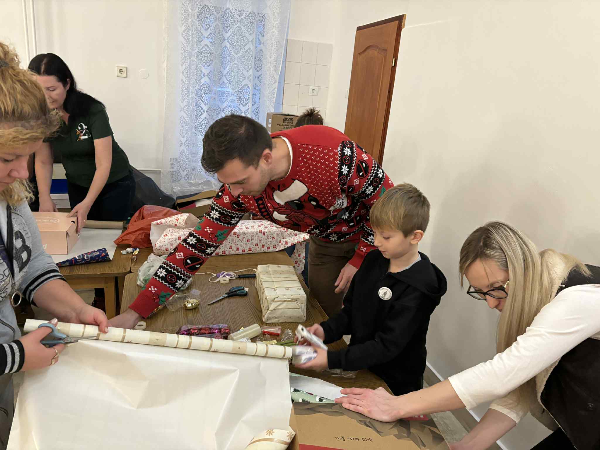 - Szeretnék köszönönetet mondani mindazoknak, akik csatlakoztak hozzánk, legyen akár gyűjtőpont (Bonmart Home, a Borháló, a Meister Holz, a Szuperinfó és a Vitafit Étterem), egyesület vagy magánszemély, aki bármivel is hozzájárult az adománygyűjtő akció sikeréhez. Az idei év újdonsága az volt, hogy arra kértük az adományozókat, hogy ne csomagolják be a dobozokat, mivel a családsegítő szolgálat munkatársai minden évben át szokták nézni azokat, a csomagok nagy mennyisége miatt pedig igen komoly terhet rótt ez rájuk az ünnep előtti hajrában. Tavaly megbeszéltük velük, hogy a következő cipősdobozgyűjtés során besegítünk nekik, s ha már ezt tesszük, miért ne lehetne ez egy karácsonyváró közösségi alkalom? Nos, azt kell mondjam, nagyon jól sikerült a "csomagoló party", rengetegen eljöttek, csupa jószándékú, kedves ember. Öröm volt nézni, ahogy egymást segítve, támogatva dolgozott mindenki, függetlenül attól, hogy mit gondol a világról - mondta el Szalóky Zsolt szervező, köszönetet mondva mindenkinek, aki támogatta a rendezvényt és az adománygyűjtést. Külön kiemelte a Huszár Közösségi Házat, amely otthont adott a programnak. A csomagoló partyn Grőber Attila polgármester is jelen volt és kivette a részét a munkából.
