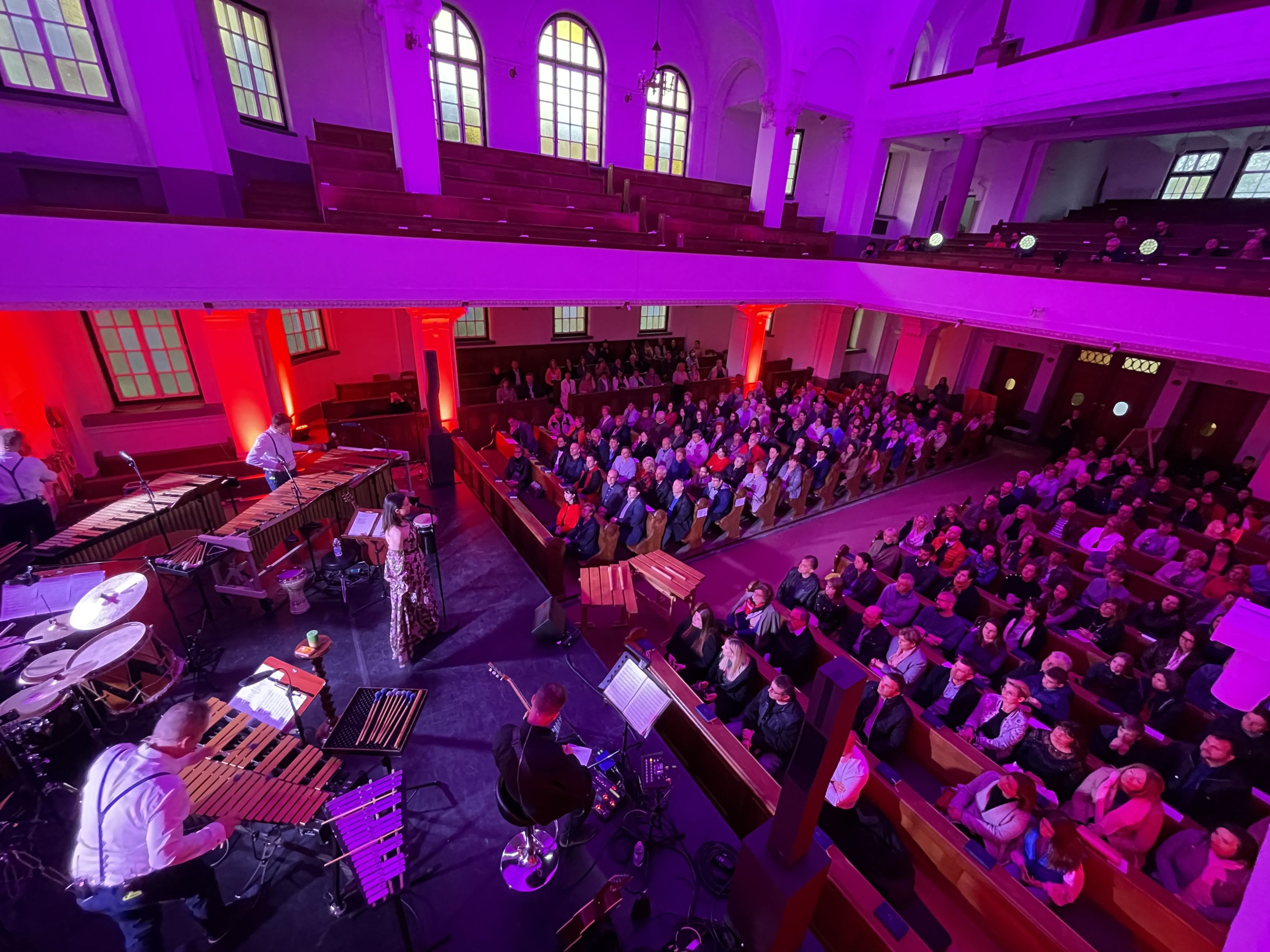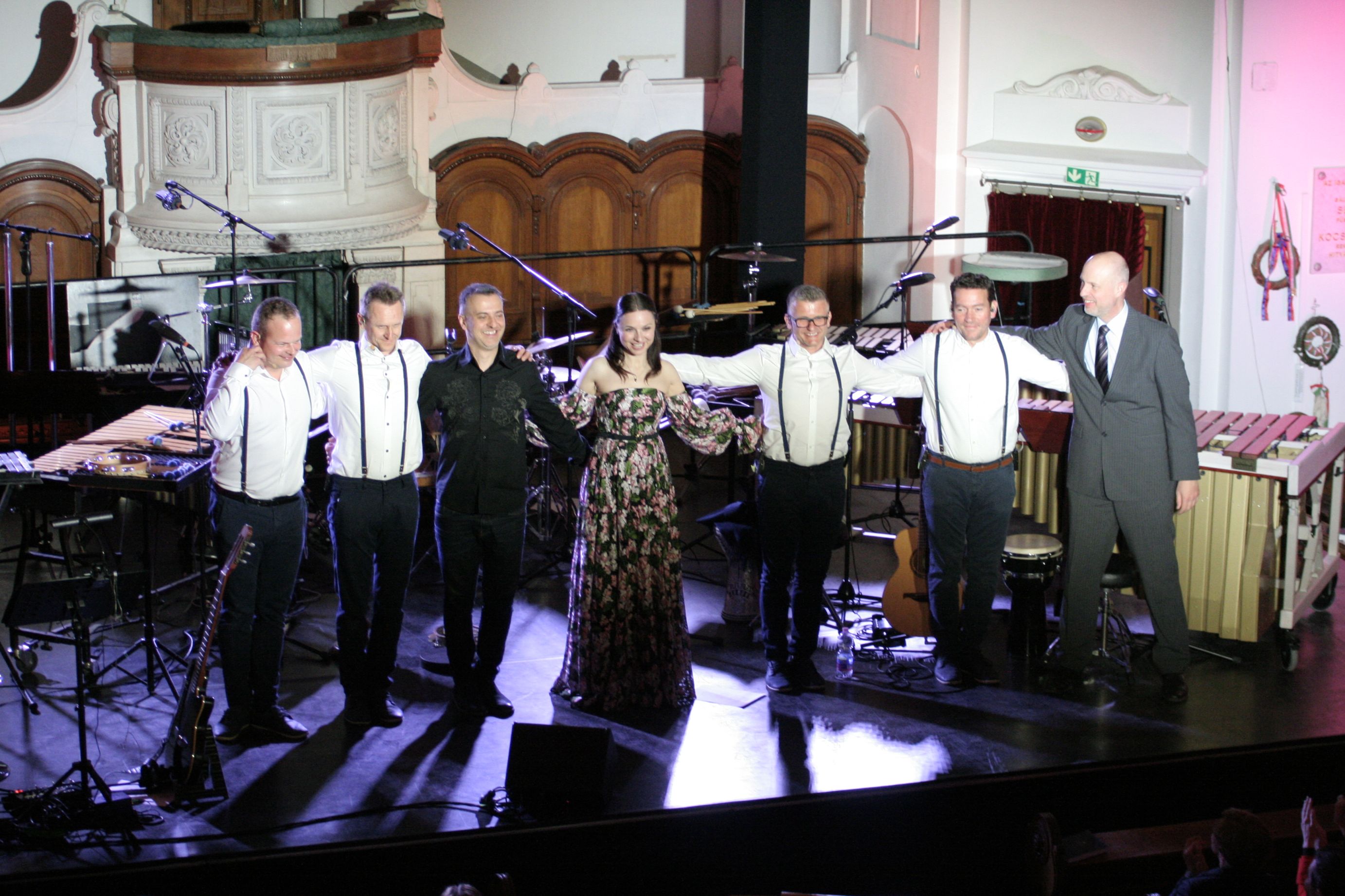 Egyáltalán nem szokványos Zséda koncertet láthatott-hallhatott ma este a nagy létszámú közönség Pápán, a református templomban. Az énekesnő csapata, a templom adottságait kihasználva látványos, hangulatos helyszínt teremtett az előadásnak, amely a zenei kínálatában is megjelenítette a nevében hordozott színeket. A szakrális barokk zenétől, az impresszionista jazz-en és bossanován át a különleges, érzékeny pop átdolgozásokig és természetesen saját dalokig igen széles spektrumát mutatták be a zenészek a zenei palettának. A templomok autentikus hangszerét Teleki Miklós orgonaművész szólaltatta meg, amely ragyogóan harmonizált Zséda hangjával. A négy főből álló Talamba ütőegyüttest színes kavalkádja pedig szintén különleges aláfestést biztosított a daloknak. Íme egy kis ízelítő a koncertből: