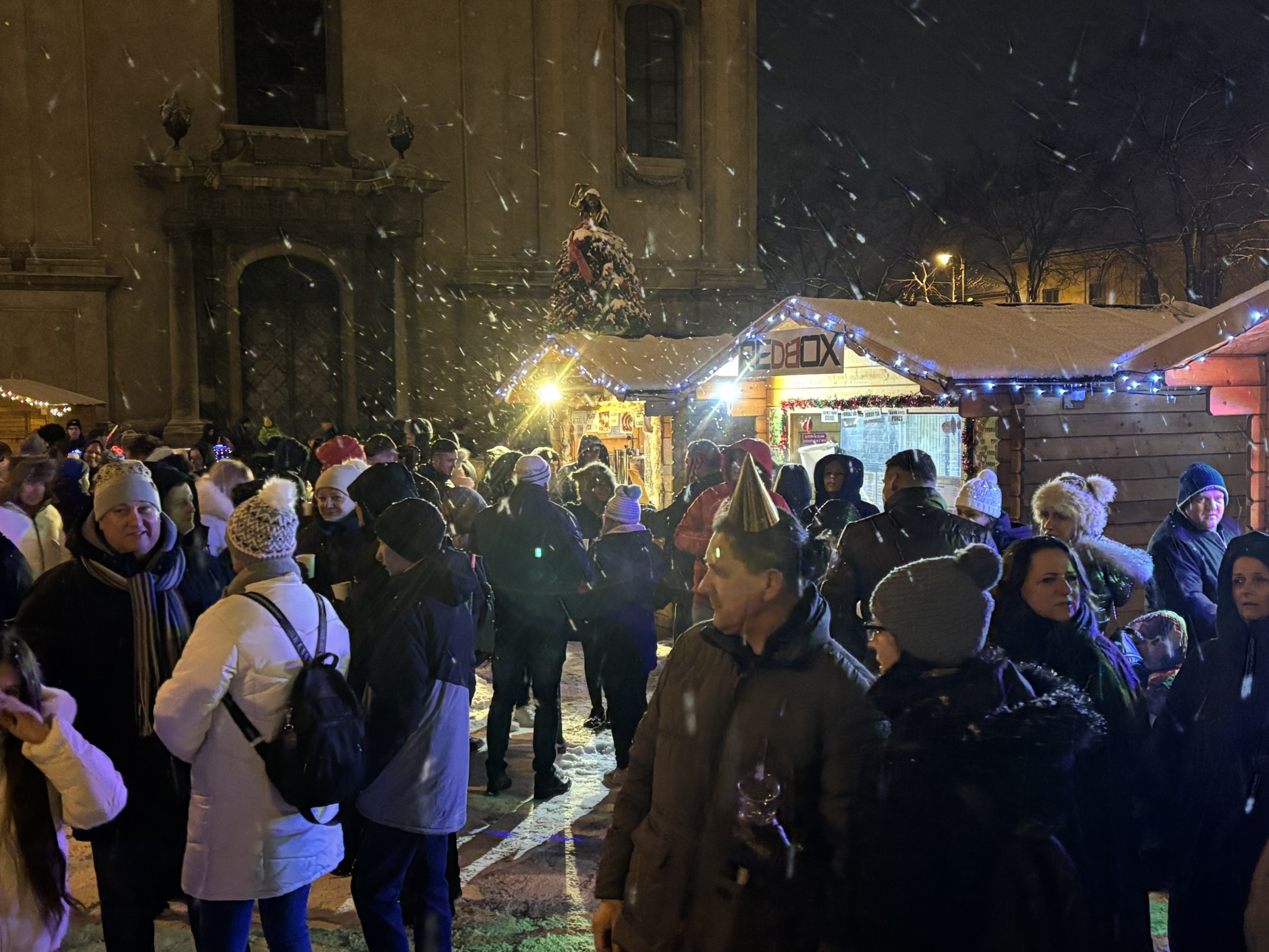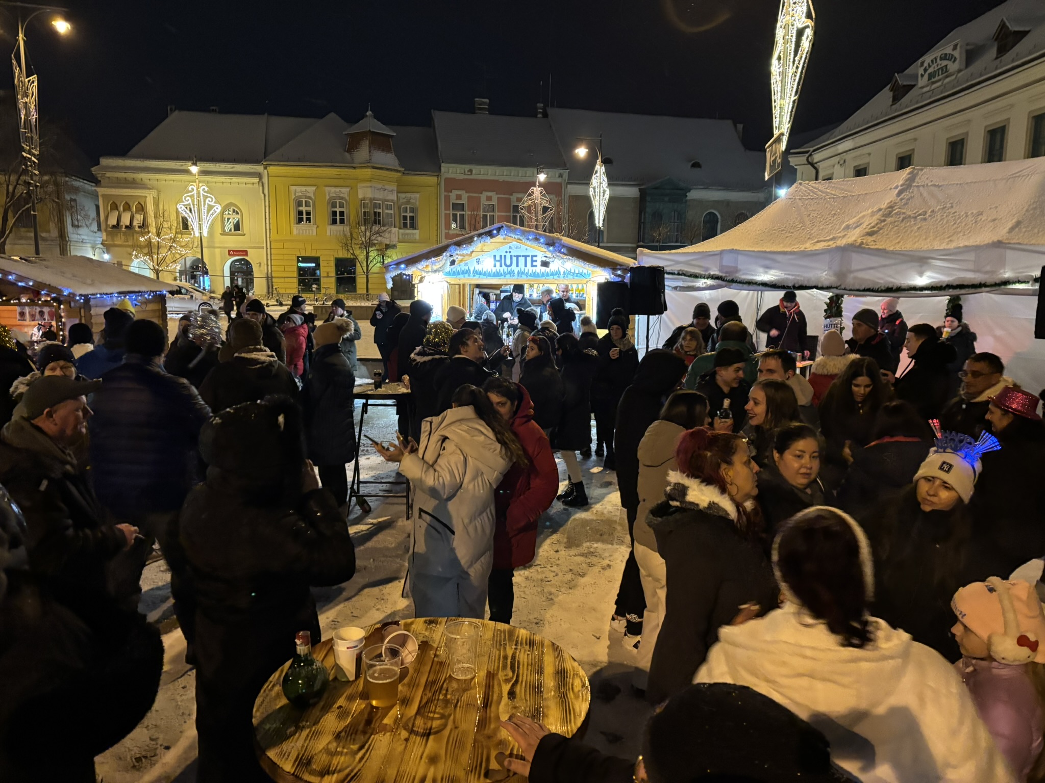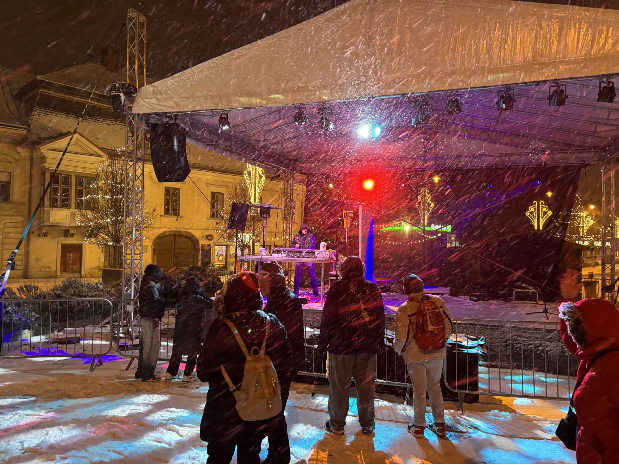 Nem indult könnyen Kasza Laci retro bulija, a szél és a szűnni nem akaró havazás ugyanis folyamatosan áztatta a technikát. Egyszer az áram is elment, ezért a szervezők úgy döntöttek, hogy nem kockáztatják a költséges berendezéseket, lefújják a szilveszteri bulit, ami épp kezdett volna beindulni, egyre többen érkeztek a Fő térre. Végül a Borháló Hütte sátra adott - elnevezéséhez méltó módon - menedéket és befogadta a Dj pultot, valamint az érzékeny technikát, így folytatódhatott a buli Dj Bécivel. Éjfélre meg is telt a Fő tér, remek hangulatban számolta a tömeg 2025 utolsó másodperceit.
