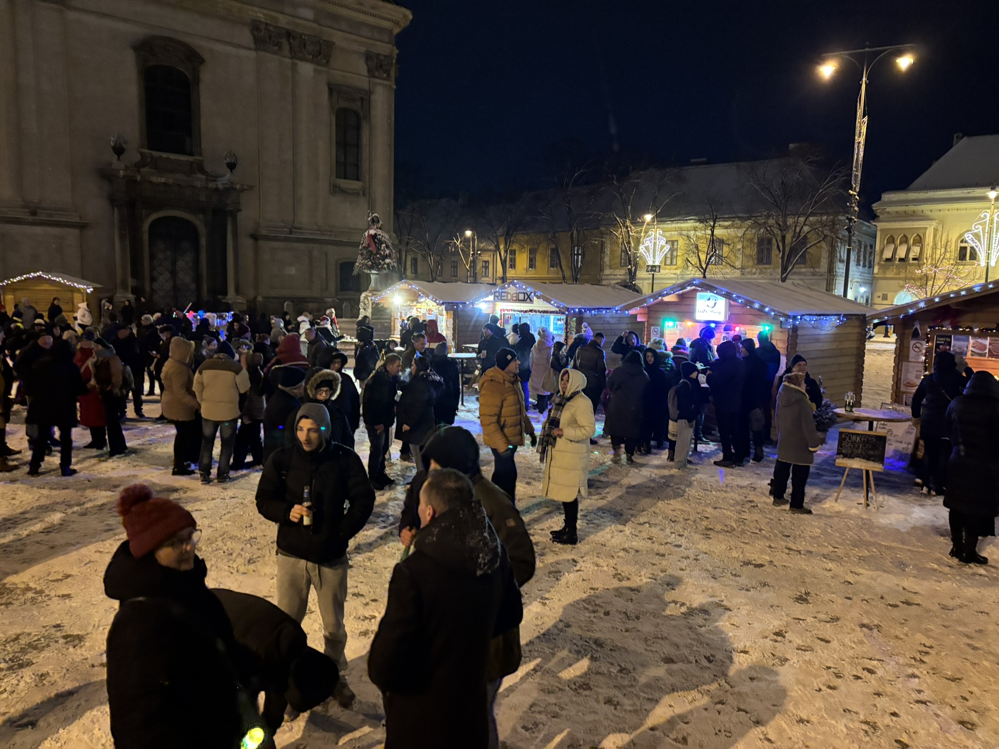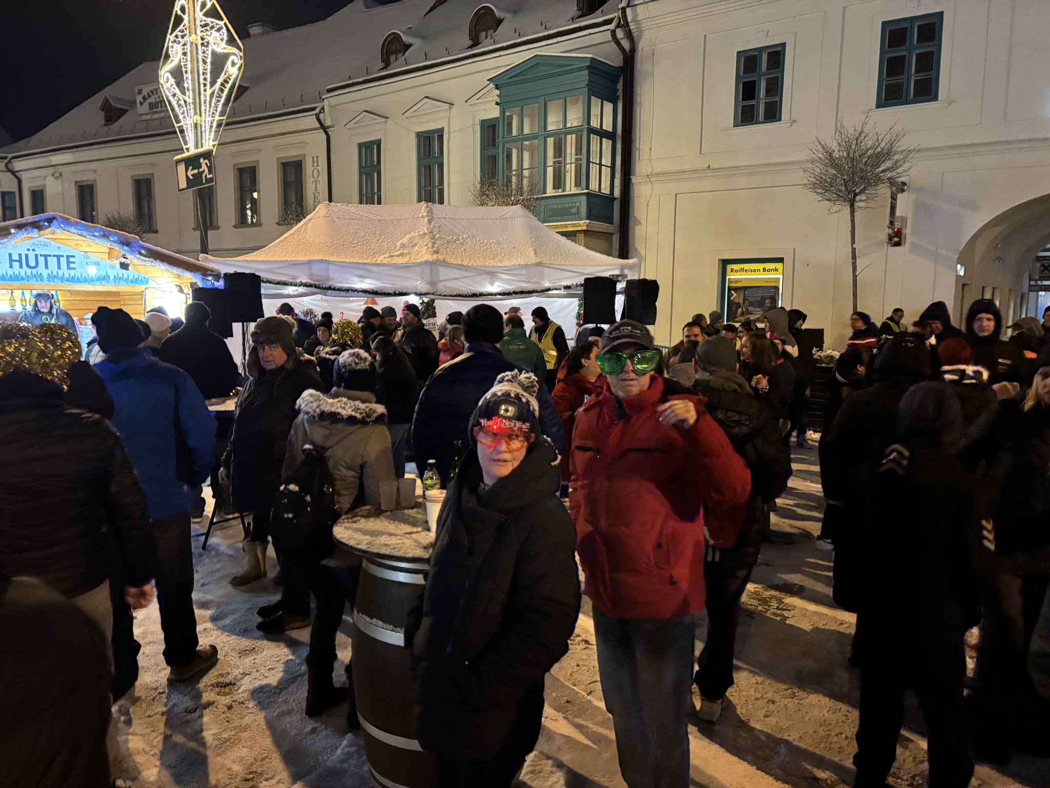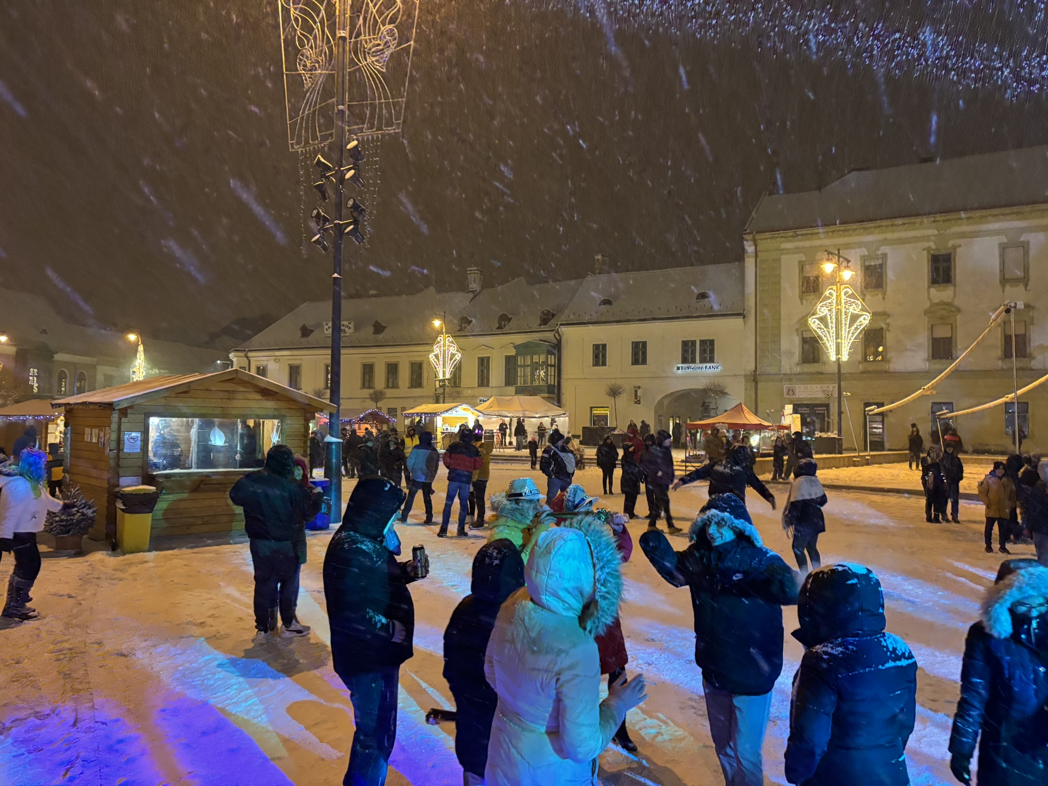 Nem indult könnyen Kasza Laci retro bulija, a szél és a szűnni nem akaró havazás ugyanis folyamatosan áztatta a technikát. Egyszer az áram is elment, ezért a szervezők úgy döntöttek, hogy nem kockáztatják a költséges berendezéseket, lefújják a szilveszteri bulit, ami épp kezdett volna beindulni, egyre többen érkeztek a Fő térre. Végül a Borháló Hütte sátra adott - elnevezéséhez méltó módon - menedéket és befogadta a Dj pultot, valamint az érzékeny technikát, így folytatódhatott a buli Dj Bécivel. Éjfélre meg is telt a Fő tér, remek hangulatban számolta a tömeg 2025 utolsó másodperceit.
