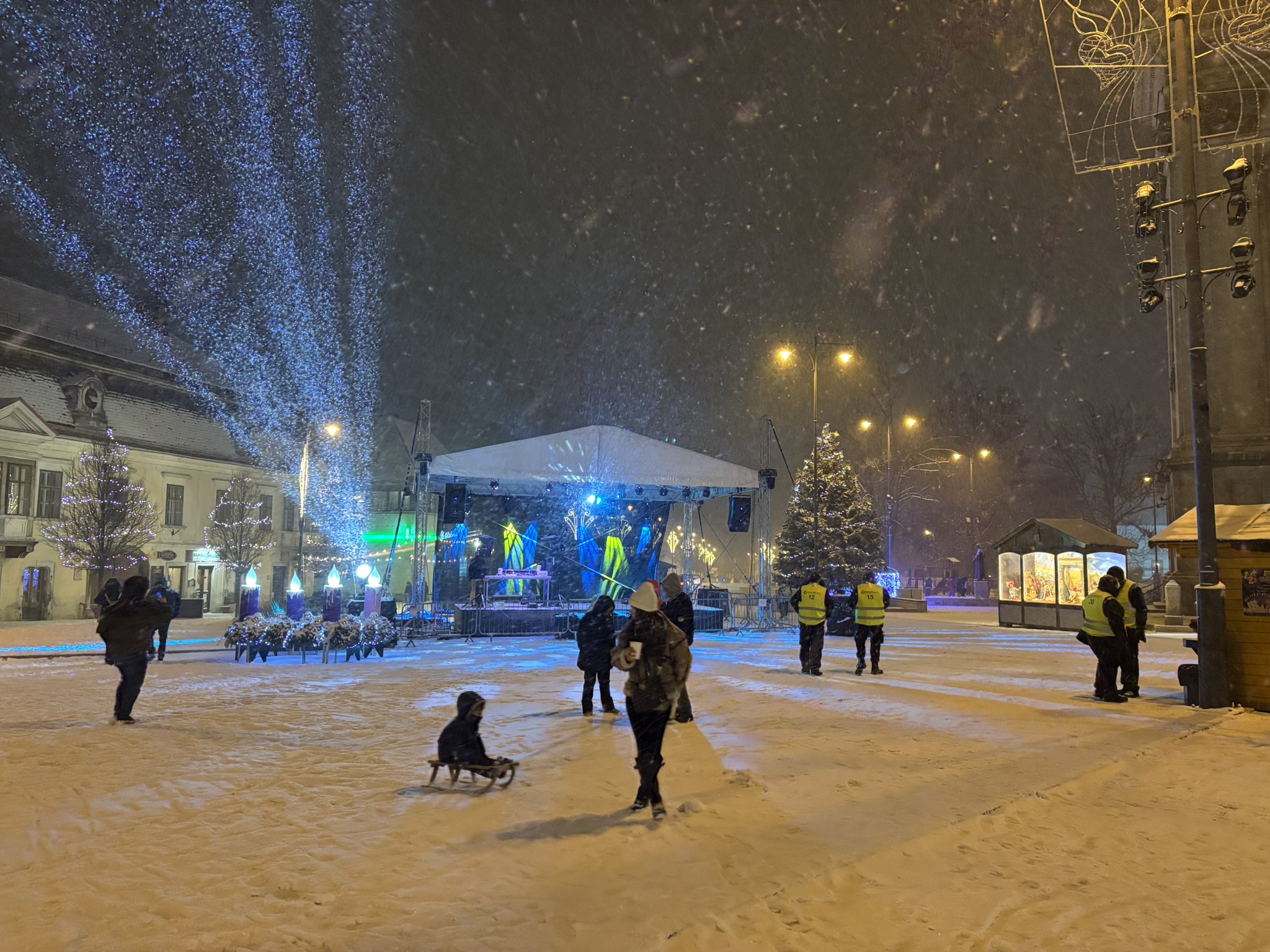 Éjfél után az emberek tűzijátékai ragyogtatták be a hópelyhes égboltot, majd pedig Grőber Attila polgármester köszöntötte az újévet, az összefogás és a megbékélés jegyében.