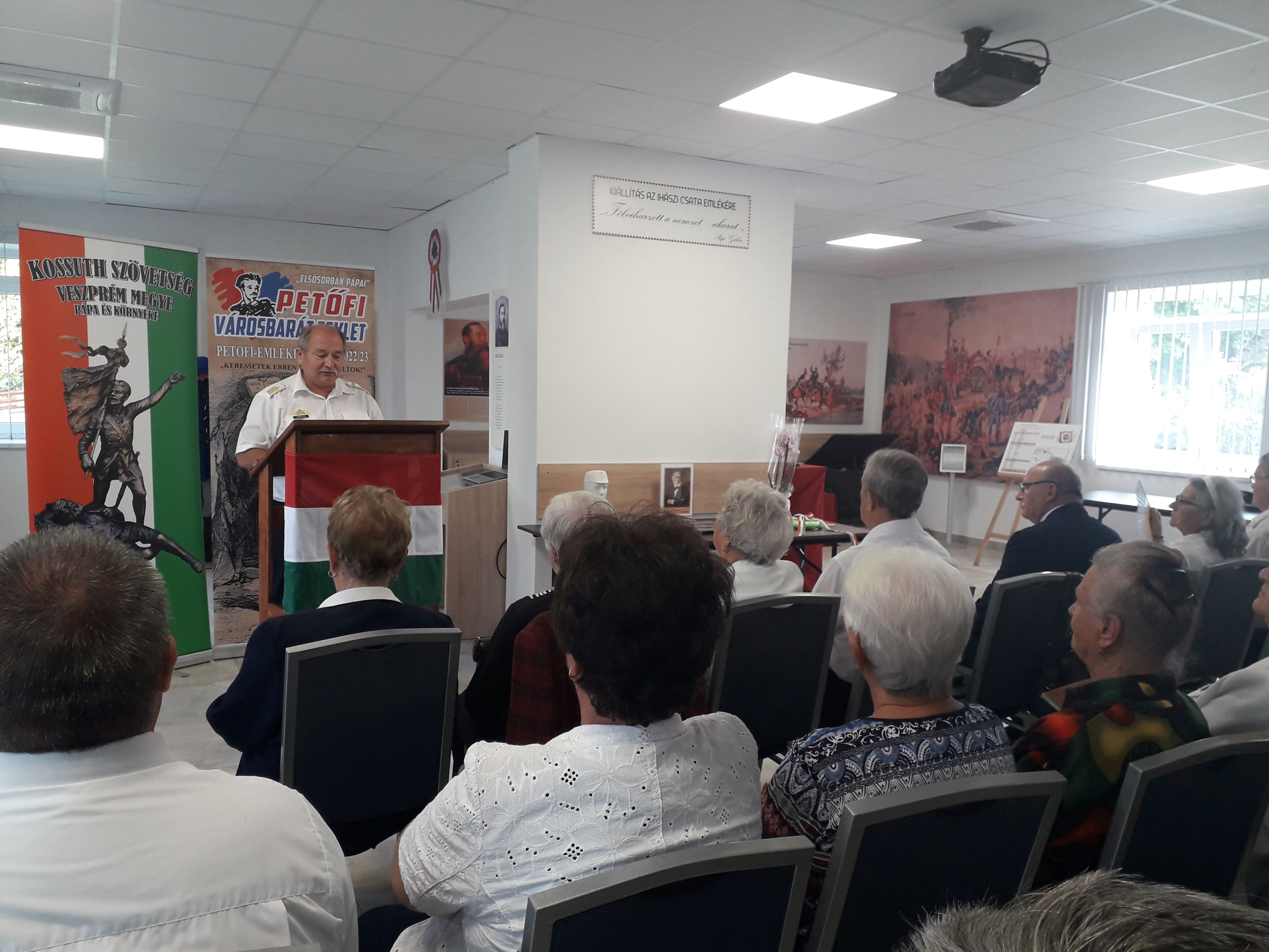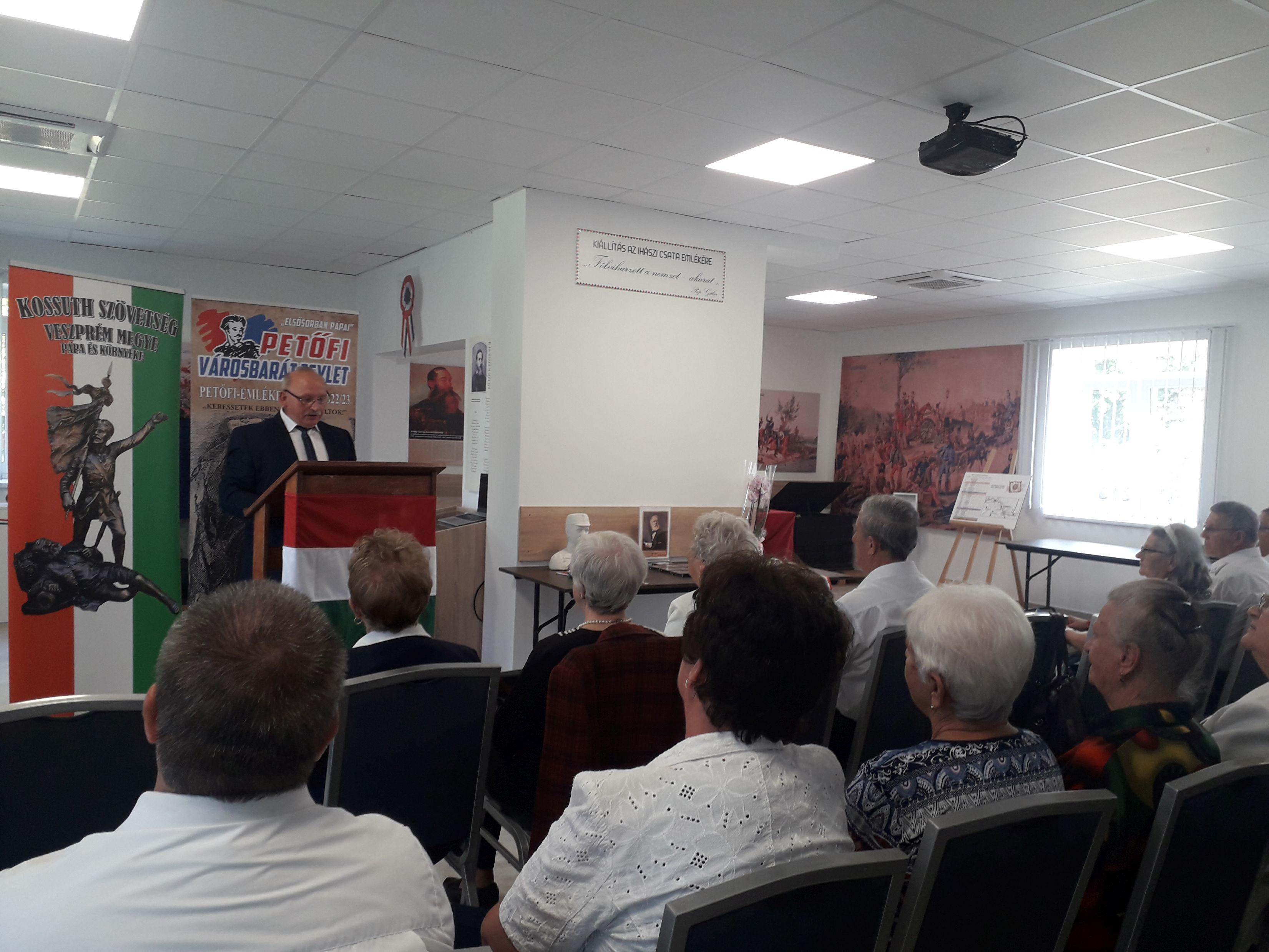 A Lajos napi Kossuth-minikonferenciára egybegyűlteket legelőször Czupper András, a rendezvénynek helyszínül szolgáló Ihász polgármestere köszöntötte. Megköszönte a civileknek, hogy nem mindennapi találkozójuknak Ihászt, az 1848/49-es magyar polgári forradalom és szabadságharc egyedüli jelentős Veszprém megyei küzdelmének emlékhelyszínét választották. A vendéglátó település vezetőjének üdvözlőszavait Puskásné Tófeji Valéria nyugalmazott pápai pedagógus, s lírikus barátai, a Pápai Nyugdíjasok Érdekvédelmi és Érdekképviseleti Egyesülete irodalmi körének tagjai követték verses összeállításukkal.