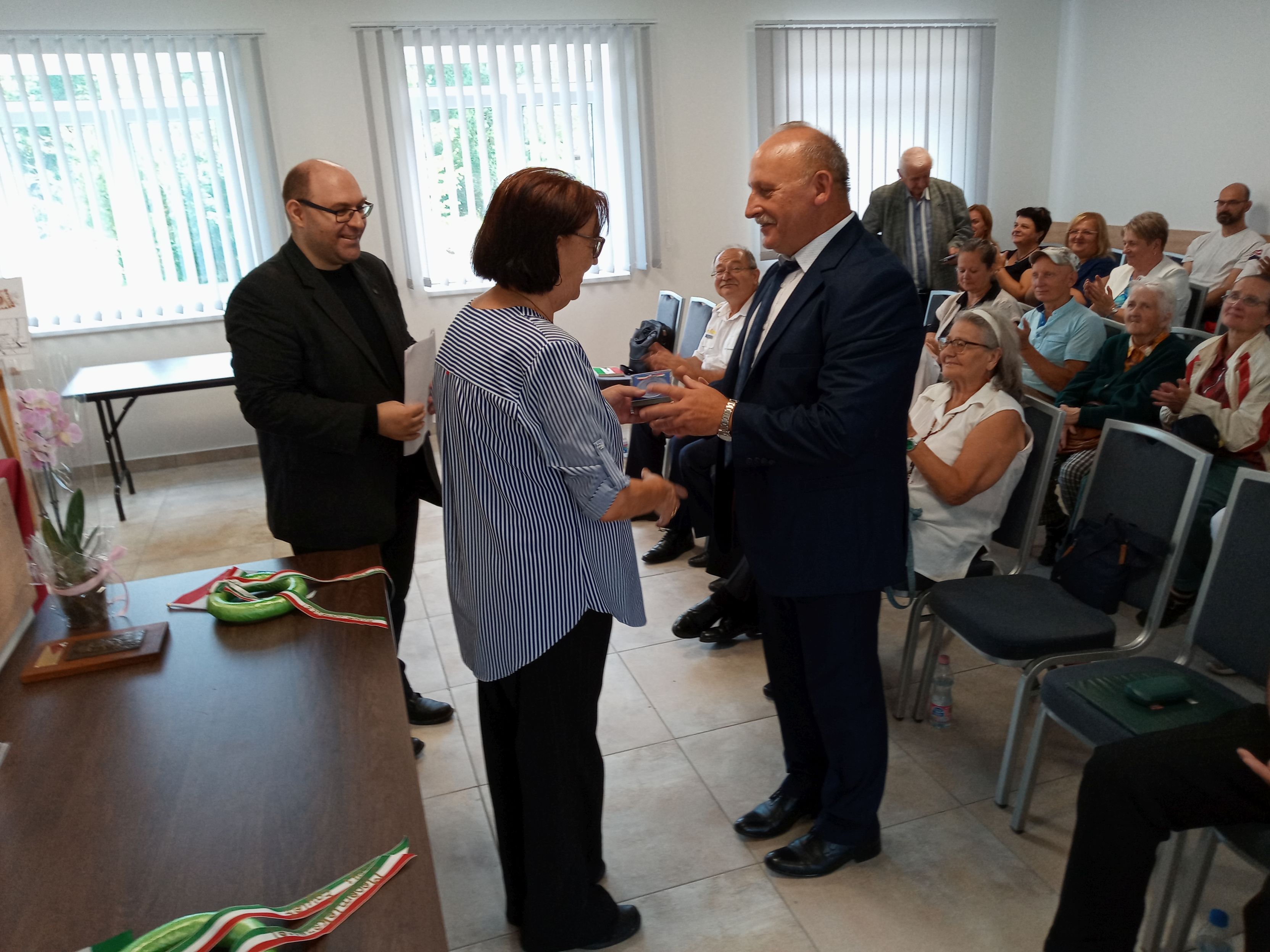 Tolmácsolta a Szövetség elnökasszonyának, Szénási Istvánnénak az üdvözletét is, majd megyei Kossuth-emlékplaketteket nyújtott át Váminé Molnár Emmával, a KSZ megyei alapító tagjával Barczáné Majsa Klárának, Malomsok volt polgármesterének, Bándi Lászlónak, a Veszprém Megyei Honismereti Egyesület emeritus elnökének, Czupper Andrásnak, Marcaltő-Ihász polgármesterének, Farkasdi Lajos nyá. őrnagynak, a pápai Honvéd Bajtársi Klub elnökének, Fintáné Dóra Máriának, Malomsok polgármesterének, Hegyiné Böröcz Adélnak, Marcaltő-Ihász jegyzőjének, Marton Zsolt ihászi születésű lokálpatriótának, emlékőrzőnek, Polczer Sándornak, Marcaltő-Ihász volt polgármesterének, Sandl Zoltánnak, Marcaltő-Ihász volt polgármesterének, Schweiger Emilnek, Malomsok volt polgármesterének és Vida Sándornak, Gecse lokálpatriótájának, Gecse volt alpolgármesterének.