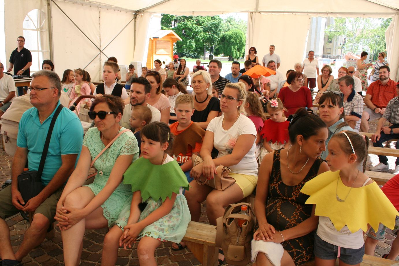 Az első színpadi produkciót a Szent István Római Katolikus Általános Iskola kisdiákjai mutatták be, Lázár Ervin: Szegény Dzsoni és Árnika című könyvéből adtak elő egy részletet. A műsor után a legbátrabbak futócipőt húztak a kánikulában, az örömfutáson felkeresték a belváros templomait, majd három kilométeres versenyen indulhattak a Várkertben.