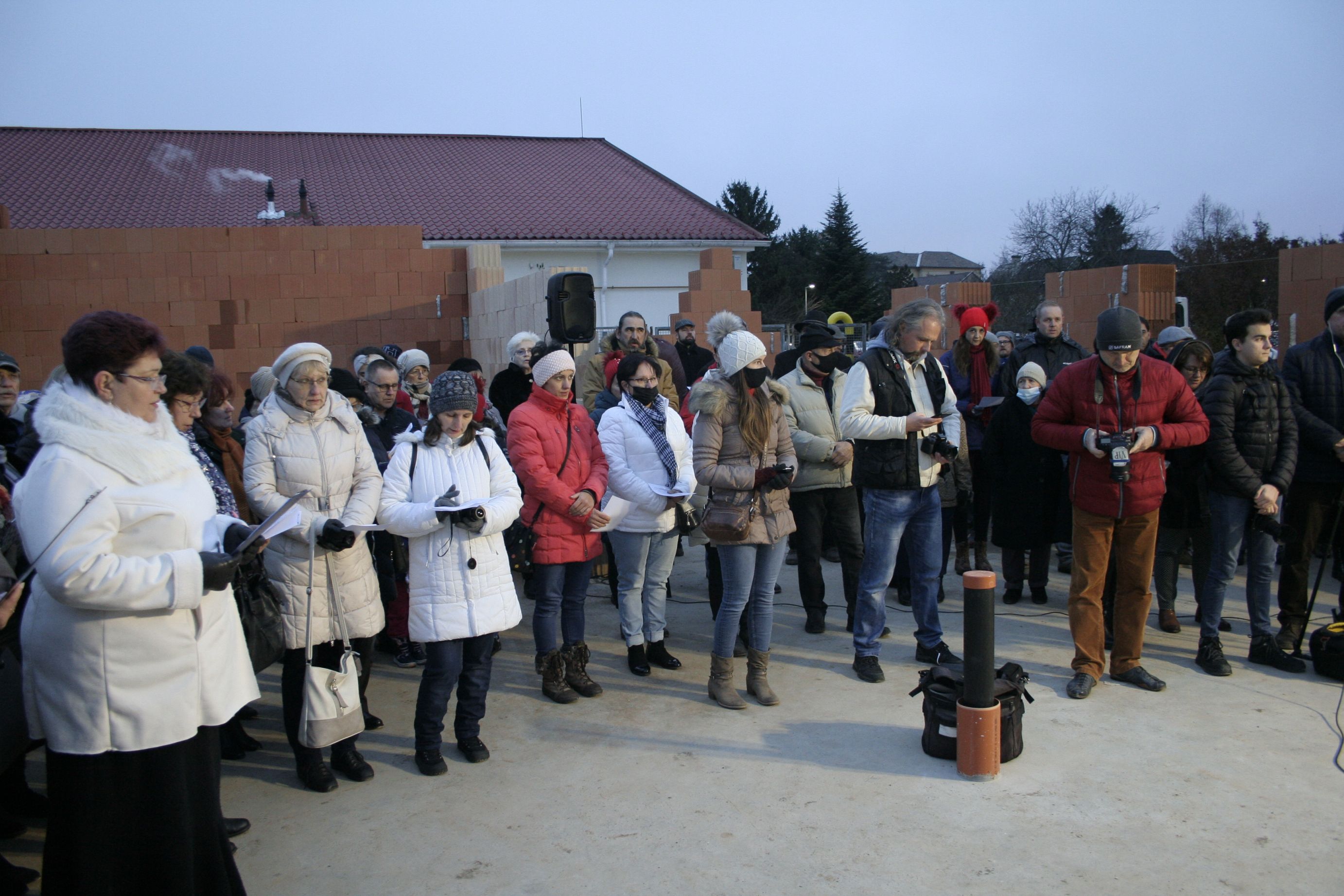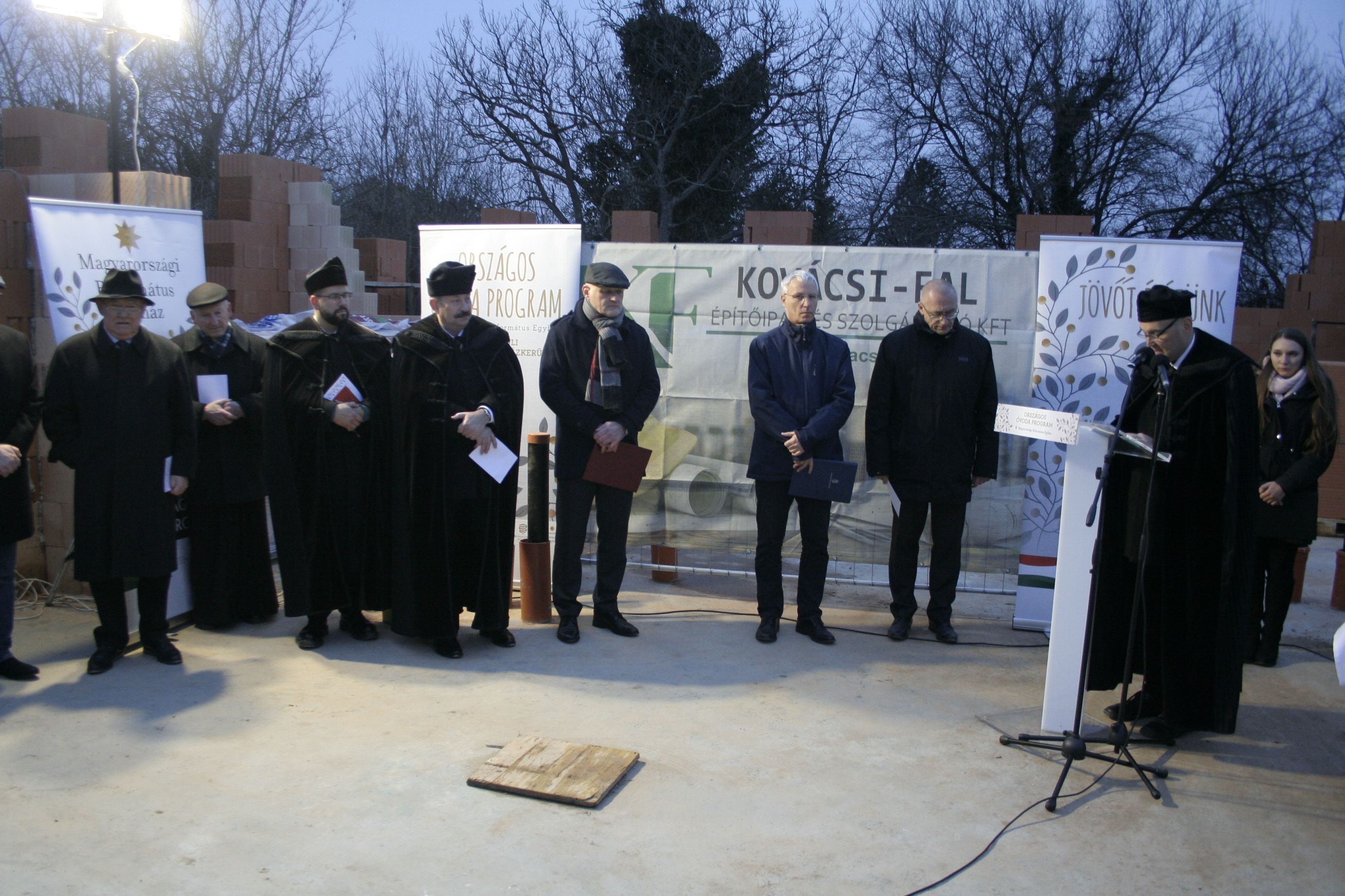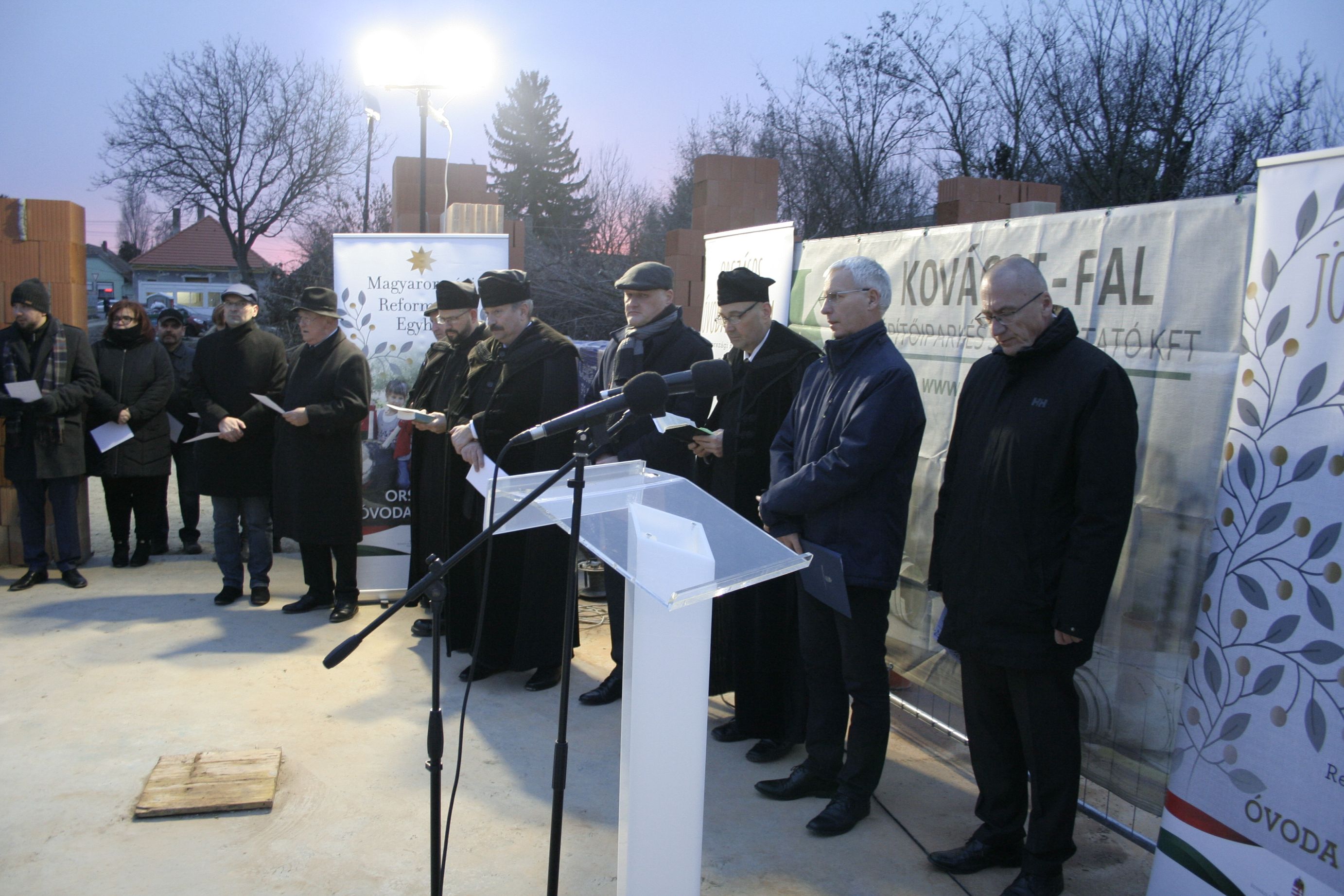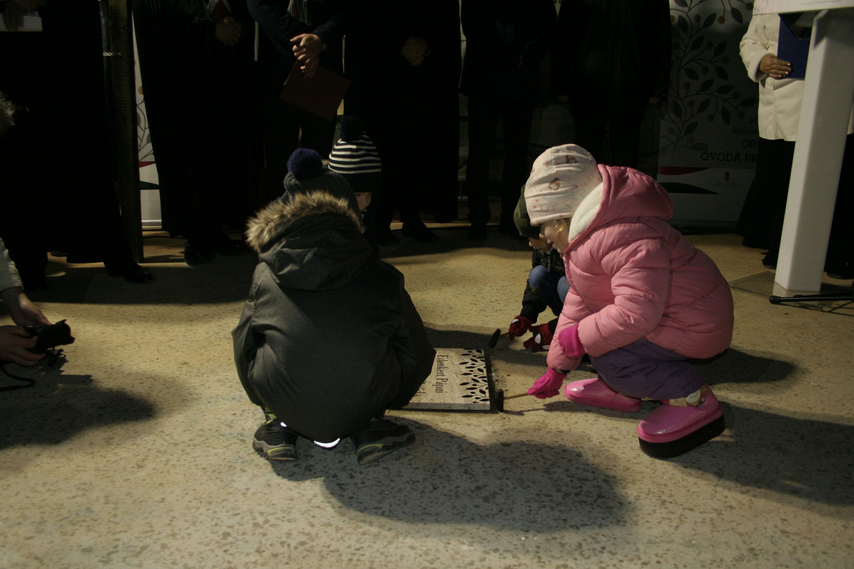 A köszöntőket követően a református óvoda ovisainak rövid műsora következett, majd pedig 4 apróság néhány kalapácsütéssel segített be a kivitelezés munkálataiba.